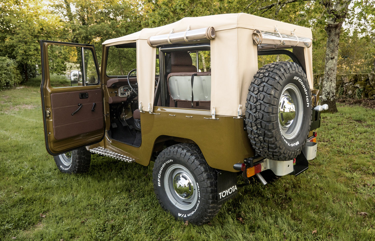 The Legacy Overland 1982 Toyota Land Cruiser BJ40 Convertible has been revamped to effortlessly blend in with nature. The glossy finish, which is in Toyota Olive Green (code 653) colour, and a beige period correct canvas soft-top are only the extra pieces of icing on the cake here. Beside this beautiful soft-top Legacy Overland have implemented a custom-built, extra-strength, roll-bar so that no matter your chosen terrain, this fully restored Land Cruiser BJ40 is going to tackle it with aplomb.