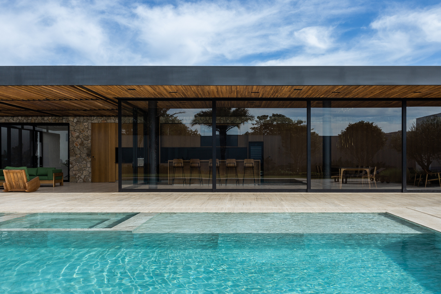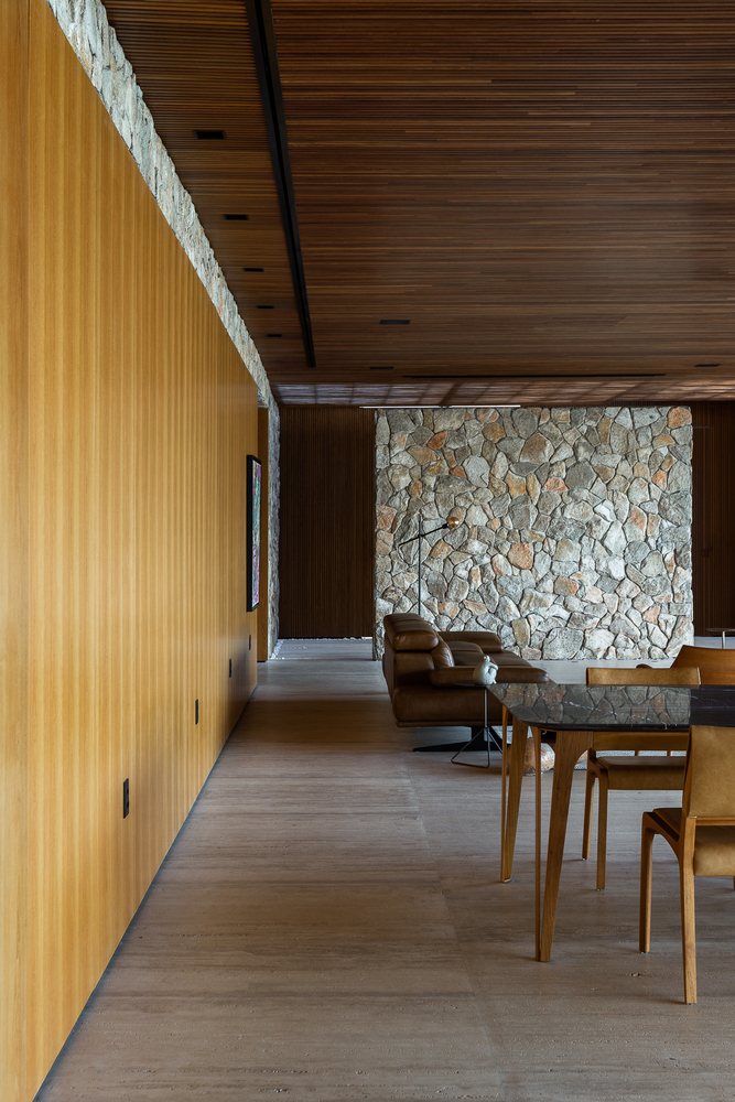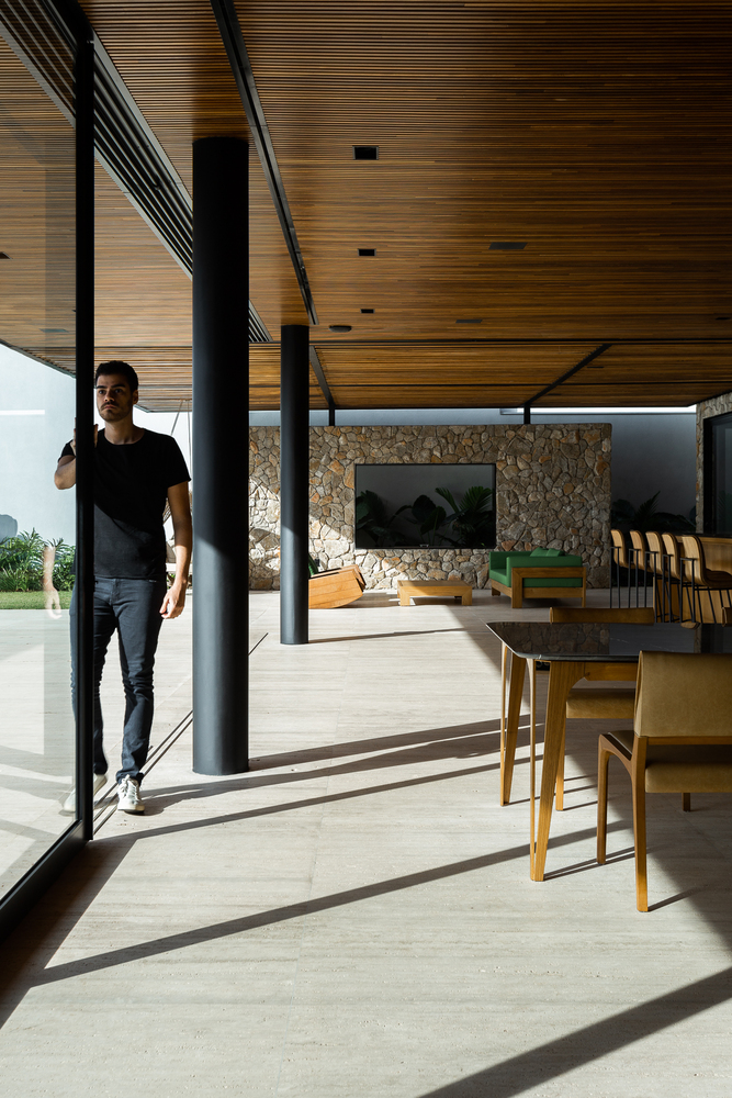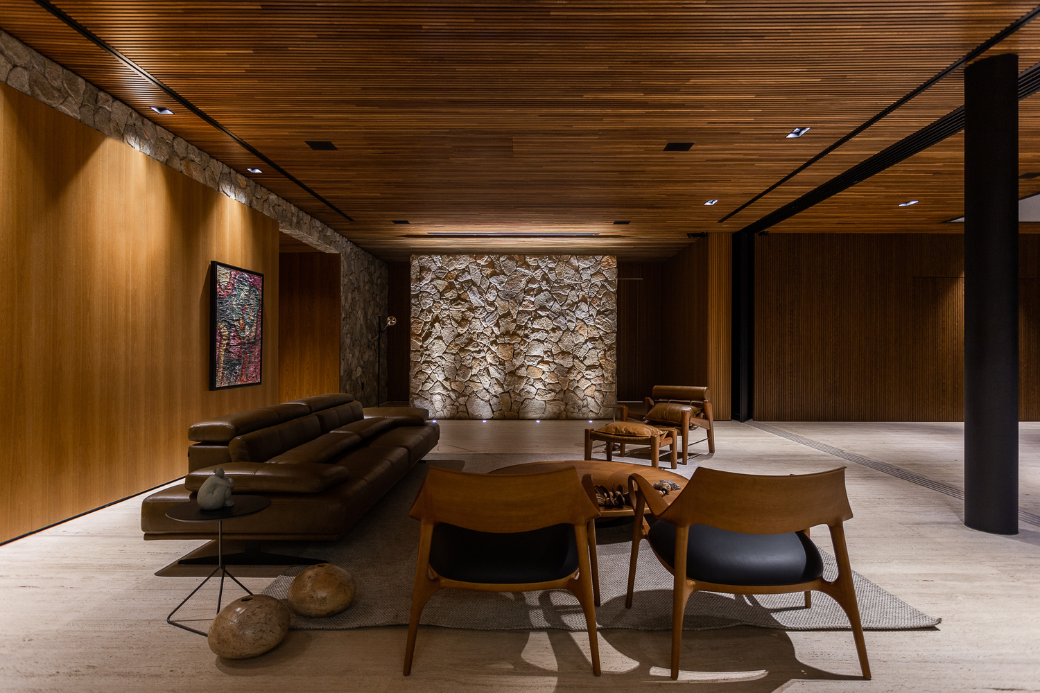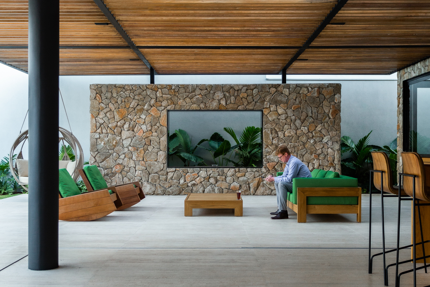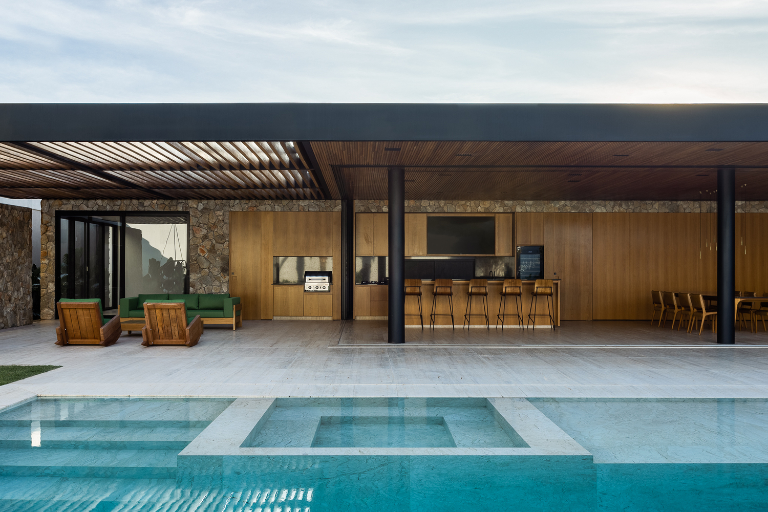 LFF House from Aguirre Arquitetura has two well defined blocks that open to the interior of the home’s plot and protect it from the exterior environment and often unforgiving climates found in Brazil. The “L” shape of the layout of LFF House seeks to take advantage of the land to the maximum, meeting the family’s needs and allowing the intimate and social areas to open up to a generous garden. The social spaces of this spectacular home is the central focus of the home because the clients were after a space to welcome their friends and family regularly.
