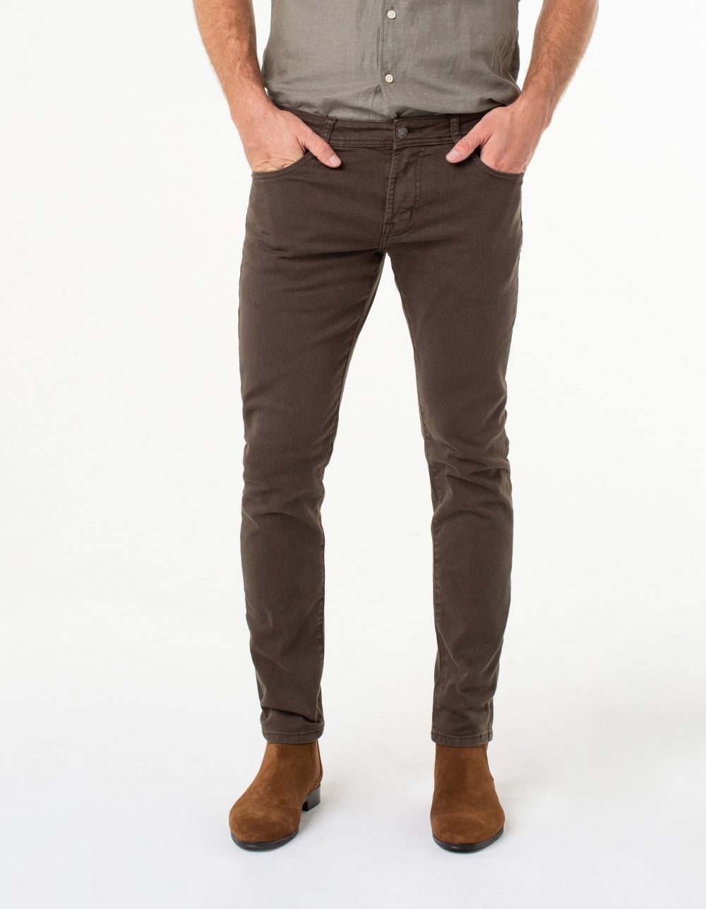 Kingston Modern Slim Straight Peach Coloured Twill – $98