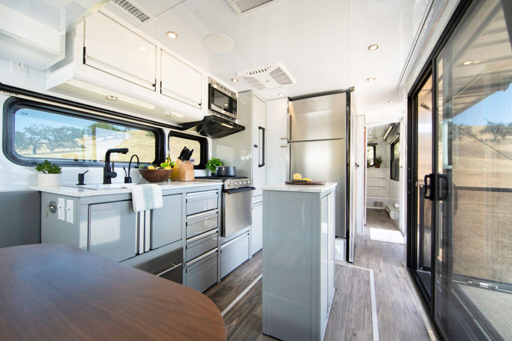 One of the stand out features of the Living Trailer is the breathtaking bathroom which is described as the nicest you’ll ever find in a trailer and who are we to argue? The interior of the Ling Vehicle 2023 Trailer highlights natural and extremely durable materials and is conceived as a painter’s canvas. Simple, natural and personal. Your LV is as unique as your own taste – a living breathing piece of art that celebrates your own style of life and individuality.