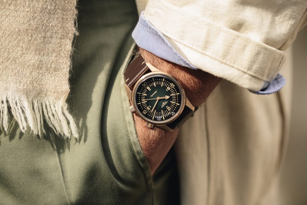 This new version is a major departure in terms of both the case material and dial colour, yet the bronze case and gradient green dial are a natural, organic fit for the timepiece’s vintage aesthetic. Bronze is the perfect case material for this vintage style design, and evokes the grandeur and mystique of the early days of skin diving. The bronze also allows for an intimate ownership experience, as the watch will naturally patina over time, creating natural shifts in hue and texture that make each watch one-of-a-kind, telling the story of the adventures you’ve taken it upon.