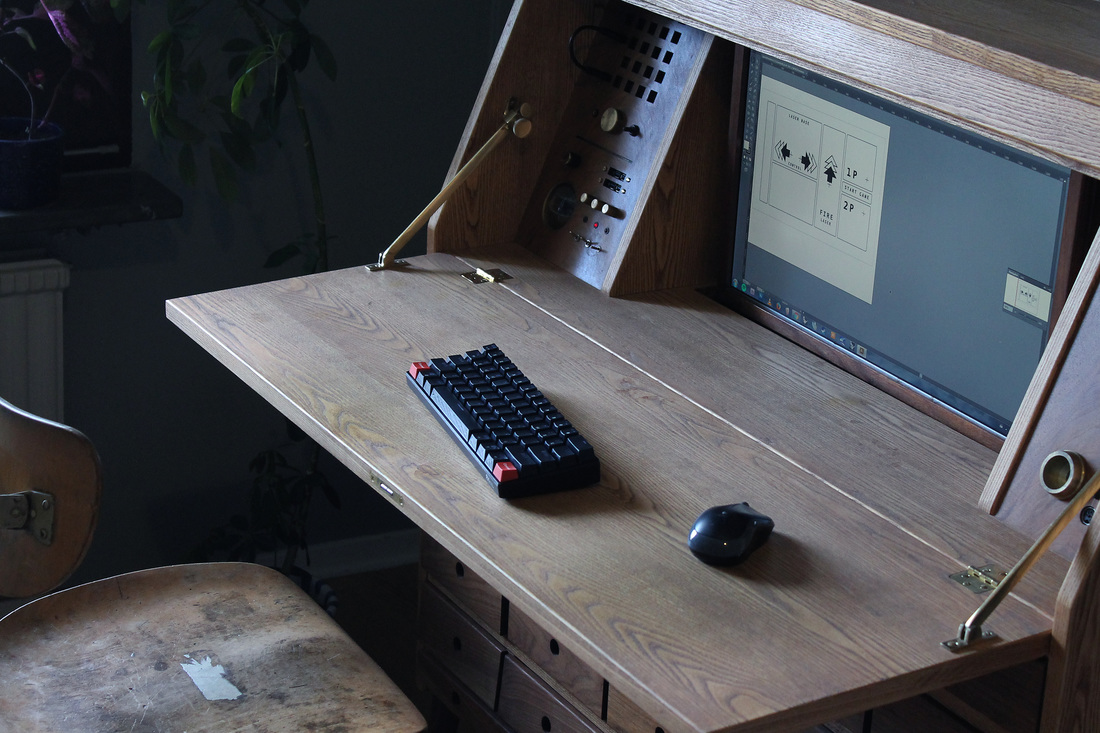 The scope and breadth of designs from Love Hulten is most impressive indeed and whilst he is perhaps best known for the retro video game constructions he crafts, the Tempel Workstation well and truly showcases his talents in the furniture arena as well and we’ve been left mesmerised by the impeccable design and craftsmanship of the stunning construct. The Tempel Workstation has been designed to fulfil the personal requirements of a new generation of craftsmen and electricians, and it does a stellar job of integrating the gadgets and tools of today into an aesthetically superior piece of designer furniture.