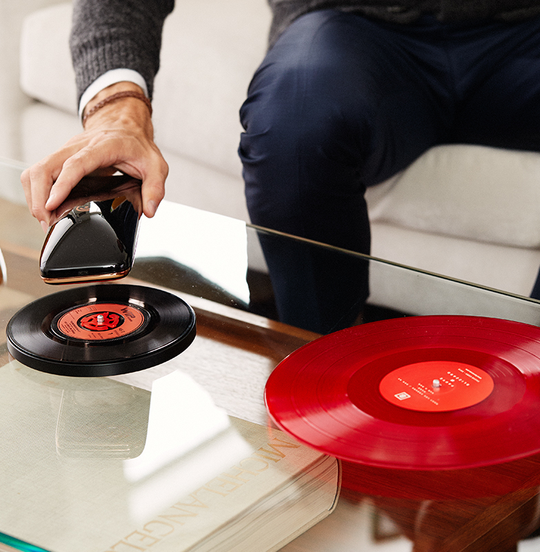 Completely unique and painfully cool, the LOVE Intelligent Turntable looks incredible when in action and turns counterclockwise on a still record whilst barely making any sound to indicate that it is in operation. It works by scanning the vinyl to discover its size and number of tracks it has and, for example, if you want to start your listening experience on track 6 simply Press LOVE’s top shell six times or select the track through the app – simple stuff indeed.