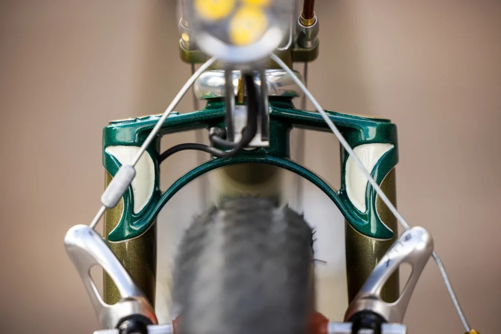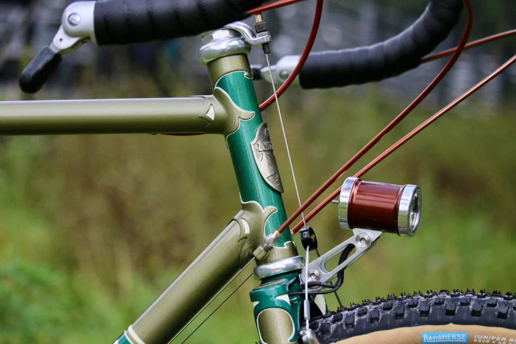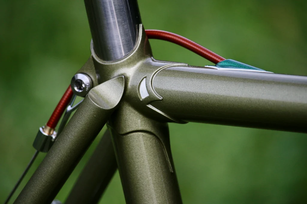The frameset’s magnificent pedigree is immediately evident in its construction. Wilde has leveraged a masterclass of componentry and fabrication to bring this vision to life. The frame features a renowned Richard Sachs designed lugset, a name synonymous with the pinnacle of traditional steel frame building, whose work represents a deep-seated belief that lugs are the most rational way to achieve superb frame quality and longevity.