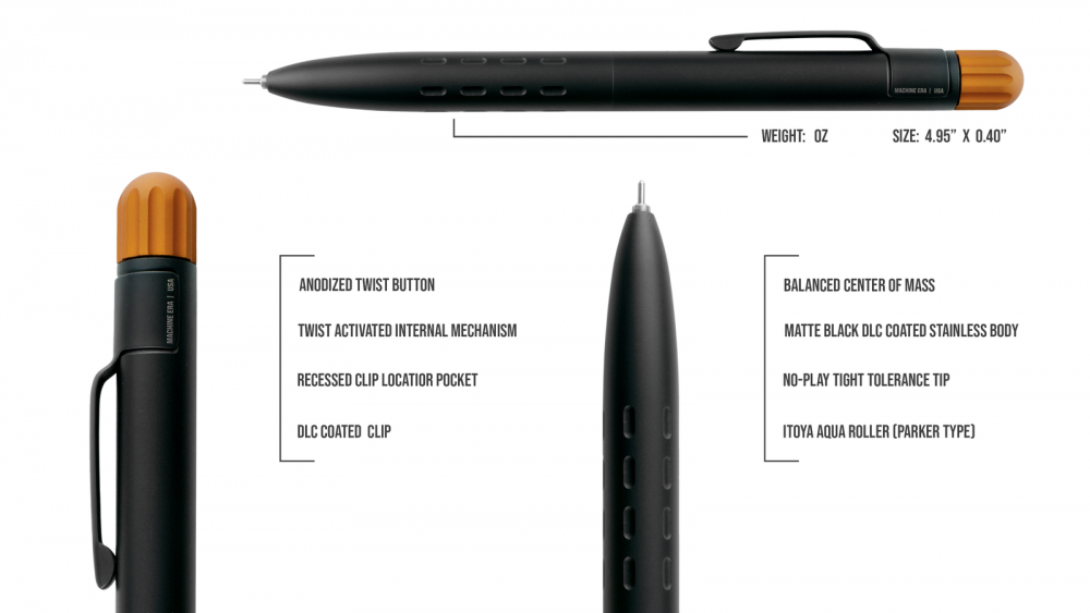 We’ve been following the awesome accessories from Richmond, Virginia, based Machine Era Co for years now here at Coolector HQ and the first thing we notice about all the wares that emerge from their workshop is the high quality of the craftsmanship and it’s no exception with the Twist Field Pen ($65). Only limited amounts of this striking piece of stationery will be made available and they are currently taking pre-orders on their site now with the intention of shipping the pens in May, so move quickly if you want to add this super cool pen to your EDC line up.