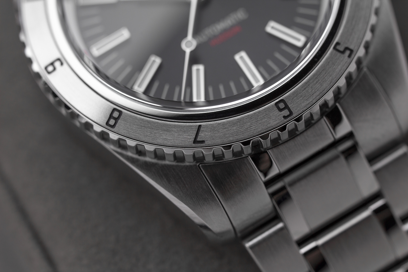 The case for the Hudson MK4 SangHwal Edition Watch has been entirely re-designed from scratch. The new deeper engraved bezel structure now has a mixed polished and brushed finish which provides a much better grip. The case construction has been greatly enhanced giving the watch a 30ATM rating – perfect for any underwater adventures afoot. The newly designed crown allows for better and more solid screw down motion and the overall case quality showcases a sharper contrast between the different finishes on the case itself.