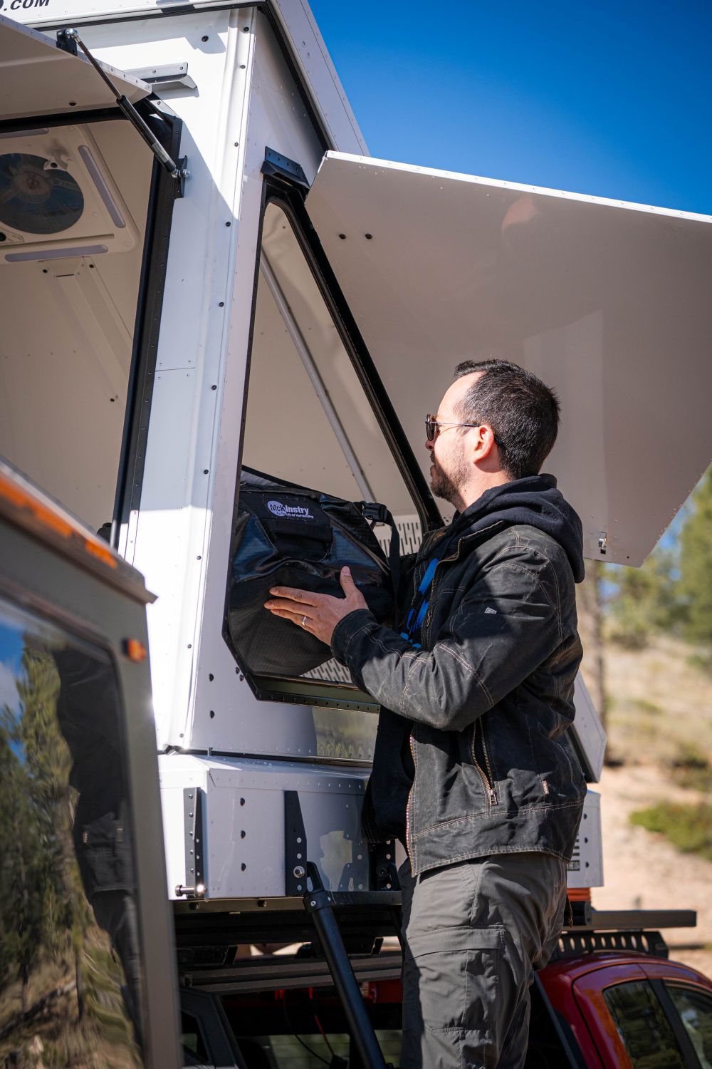 According to Mammoth Overland President Scott Taylor, the SKL was born from a simple yet brilliant question: “What if a trailer and rooftop tent had a baby?” The SKL takes the most beloved features of their wildly successful HV, ELE, TL, and WLY trailers and elevates them – literally – to the roof of your rig. More than just a place to sleep, the SKL is essentially a portable power station you can comfortably bed down in.