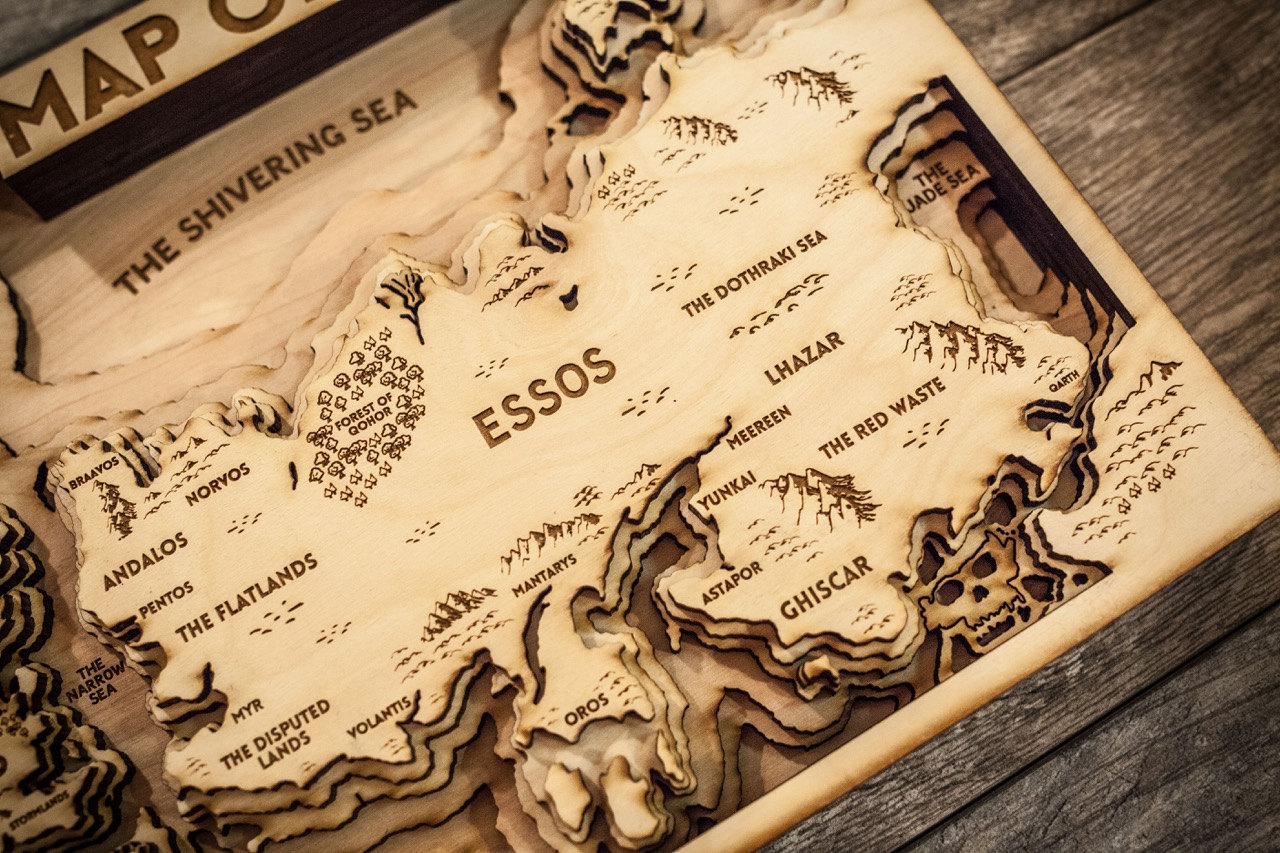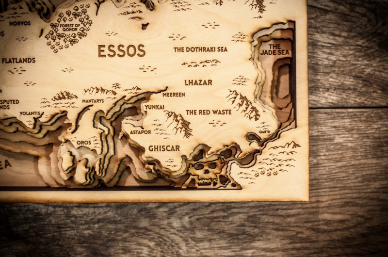 It boasts a seafloor which has eye-catching contours which have been carefully created from scratch. In addition to the superbly detailed contouring, the terrain of the Map of Thrones is stylishly engraved with an absolute abundance of intricate details that really make the piece stand out and there are plenty of engraved headings to make sure you can familiarise yourself with the geographical landscape of the Game of Thrones universe.