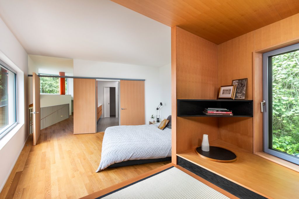 Japanese architecture is a heavy influence for Me-Kwa-Mooks Net-Zero House and this shines through both inside and outside of the house to dramatic effect. The architects behind the build wanted to make the house more sustainable and better reflect the interests of its owners – two former circus performers with a love for Japanese architecture.