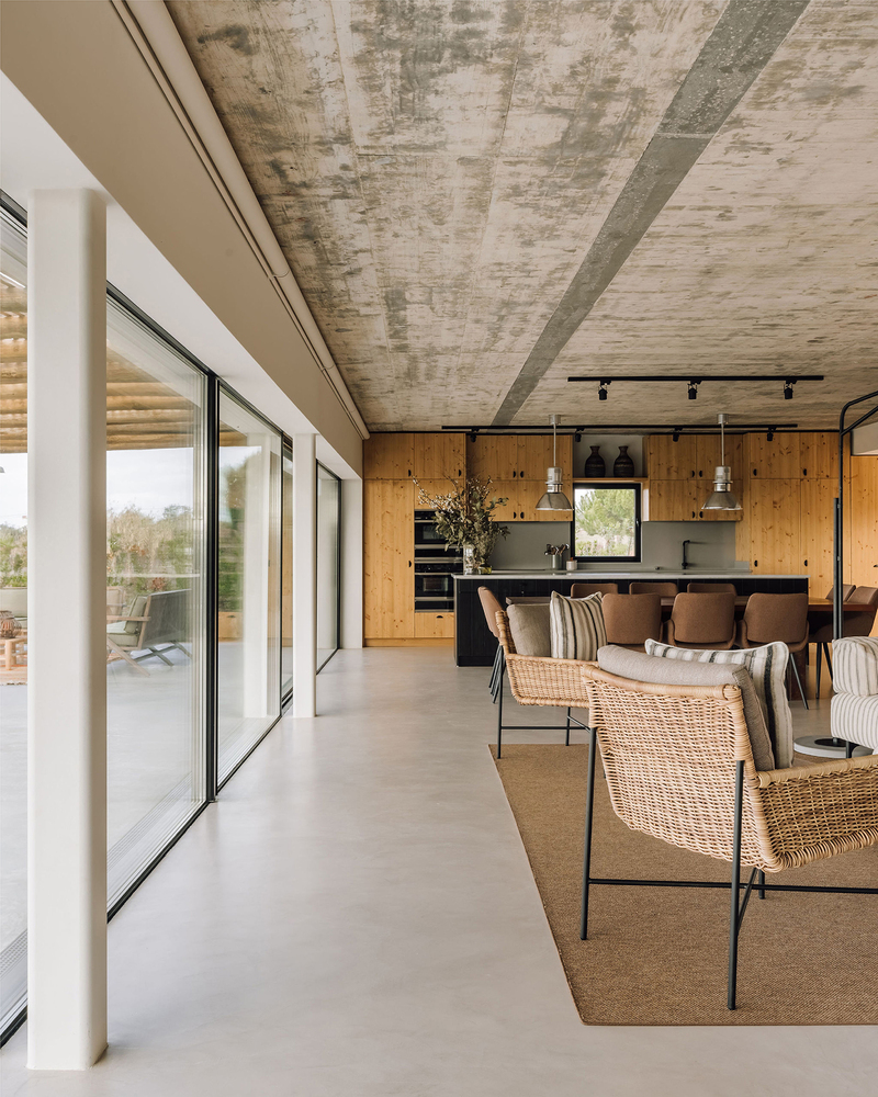 Understated yet inviting, there is an awful lot to appreciate about the design and finish of Melides House in Portugal. The disposition and arrangement of the main volume of the home creates exterior spaces with enhanced privacy and interior spaces with varying relationships to the surroundings that draw you in and make for a truly relaxing space in which to unwind. The layout is is organised from the north, from where the central patio is accessed, delivering a visual relationship between the various parts of the property. The eastern wing is composed of the social areas, brought to life by large glass planes that overlook the terrace and swimming pool.