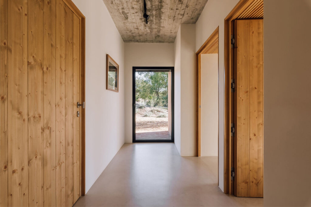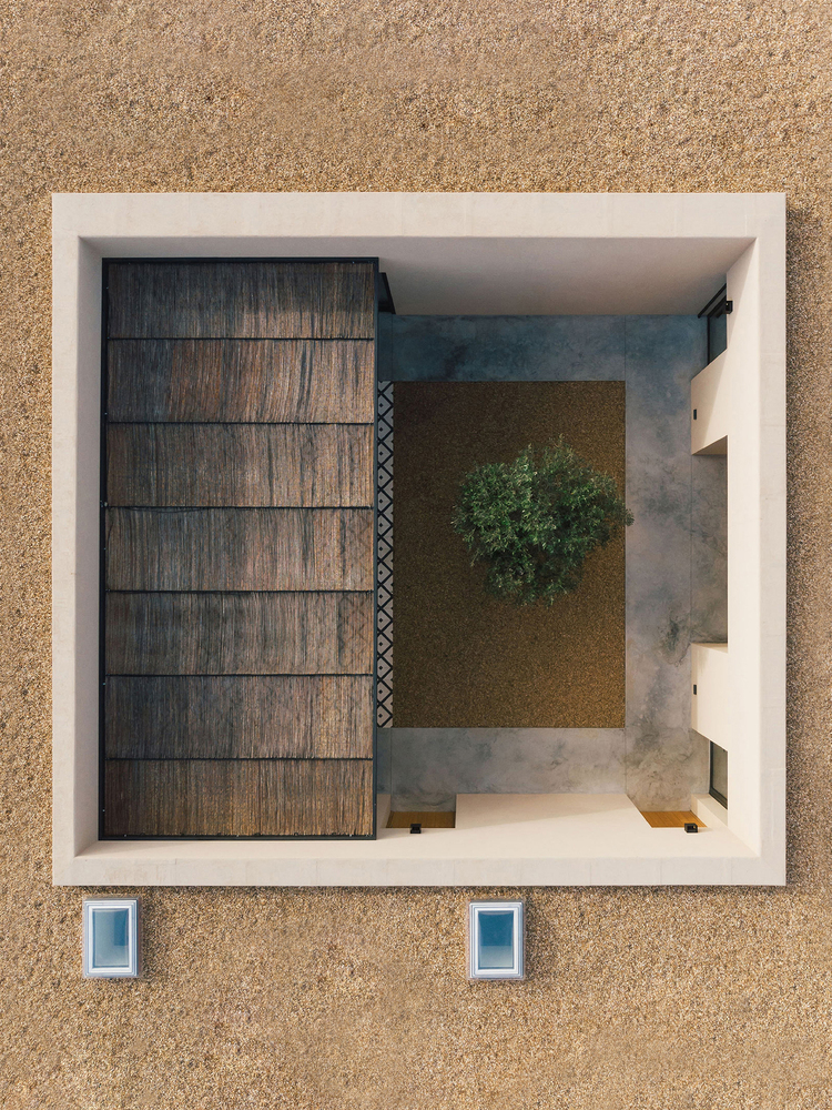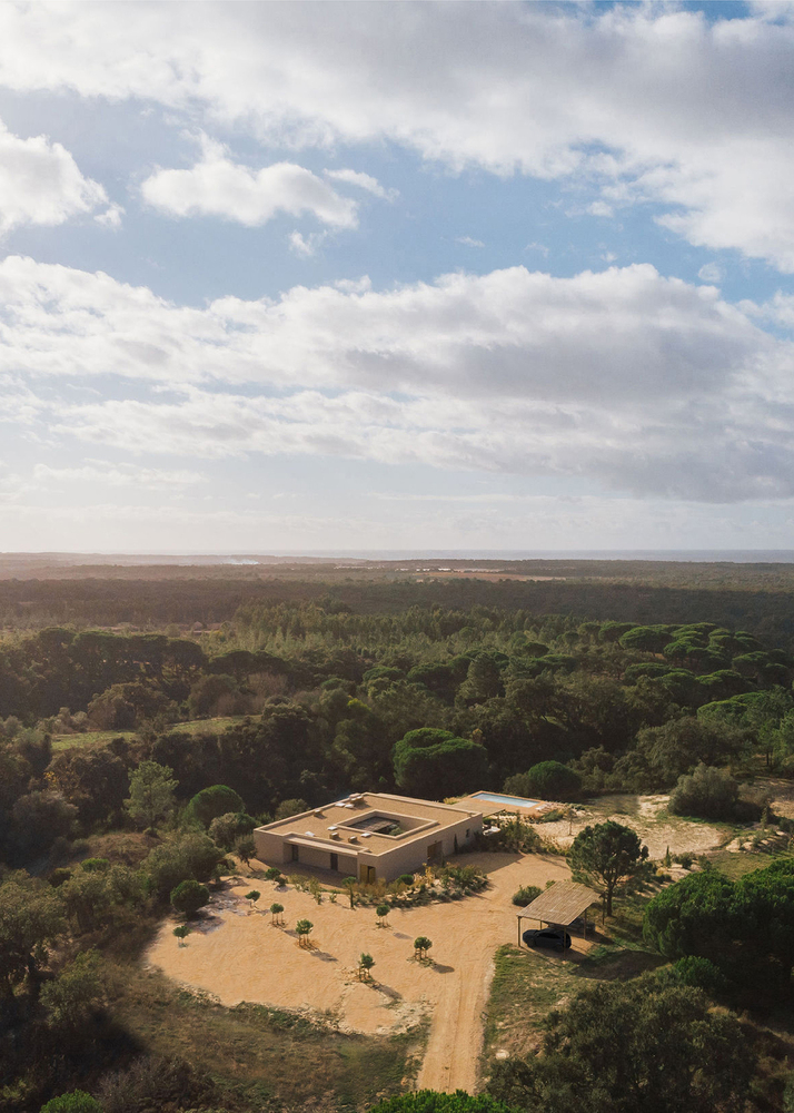 If you love the thought of remote living in a modern setting, Melides House from Fragmentos is definitely going to be ticking all of the right boxes for you. On approach to the building, the slope and the natural elements that surround it prevent an overview of the plot and ensure that privacy remains intact. In earthen tones, the transition between the building and the landscape is effortless, privileging tranquillity and nature. The construction consists of a single volume with a flat roof from which a mass is removed to form a central patio and around which the dwelling really comes to life.