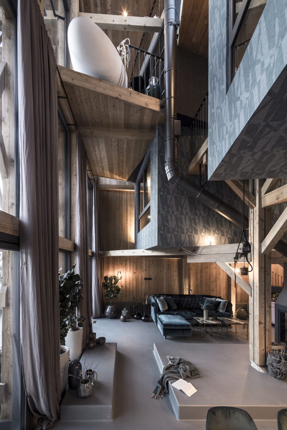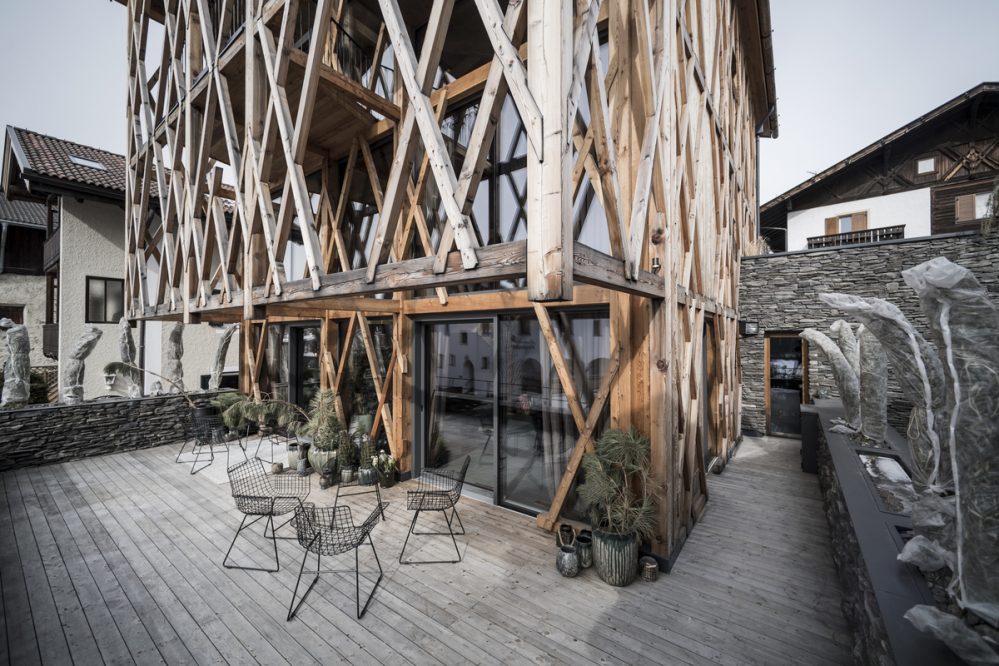 The Messner House from NOA saw the architects make a conscious decision to finish the exterior of the structure with a ‘coating’ in keeping with tradition: namely, a wooden grid on all four sides, just as is so often seen with alpine barns. However, as far as the interior is concerned, NOA definitely thought outside of the box and came up with some stunningly striking design features that are impossible to ignore. On the ground floor there is a common area which spreads out almost in a ‘piazza’ fashion and the rest of the interior develops in a vertical way and instead of the classical room division there are ‘hanging boxes’, which are positioned at different heights and interconnected by stairs and walkways – they giving the sensation of walking up a mountain path towards the peak.
