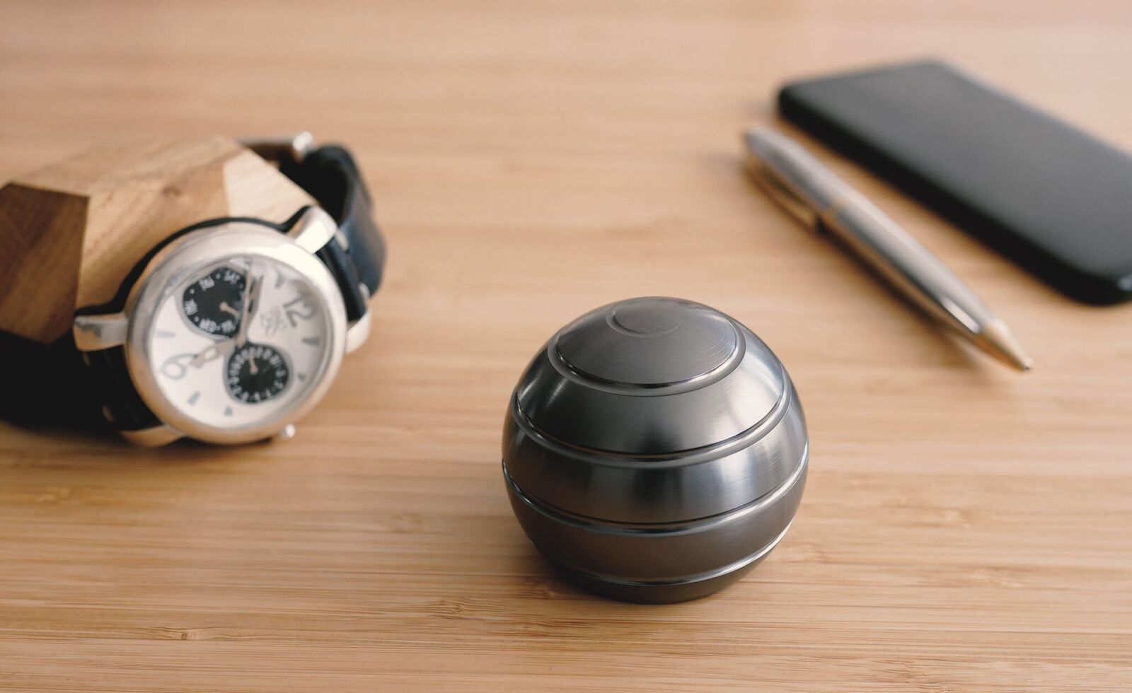 The MEZMOGLOBE Kinetic Desk Toy has been carefully designed to spin on any desk or flat surface so no workspace is out of bounds for giving this desk toy a whirl. The robust, solid spherical body and smooth finish ensure that it is very pleasant to interact with and has a tangible, weighty feel of excellence. It spins silently so you don’t need to worry about annoying your co-workers sat around you who, let’s face it, will probably want one as much as you when they see it.