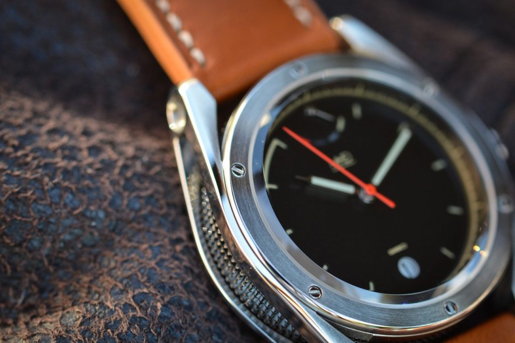Classy from top to bottom, the Type 1 Watch has a knurled, brushed and chrome finishes applied to the casing and this excellent looking timepiece has a water resistance of 5ATM. The dial also has plenty of striking features which includes a power reserve sub-dial, chrome power-reserve hand and a matte black dial with laser cut marker slots.