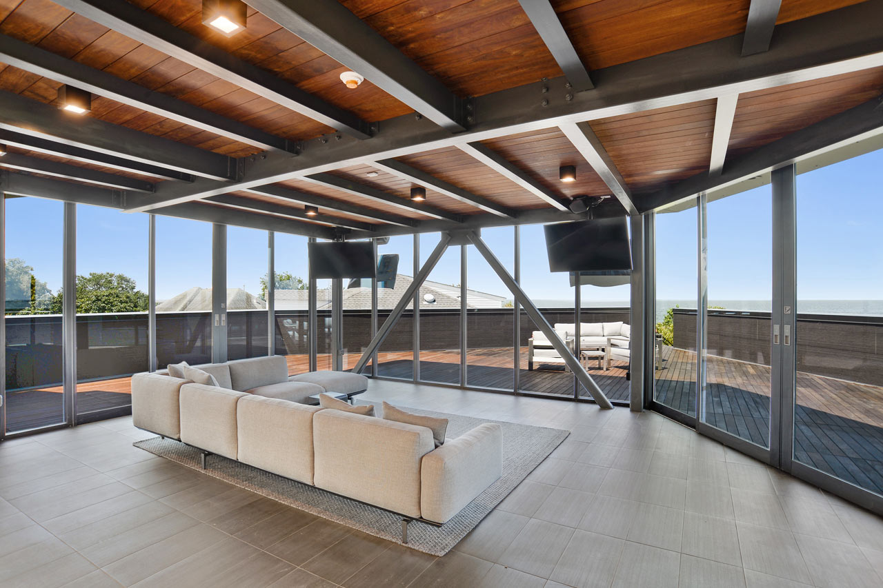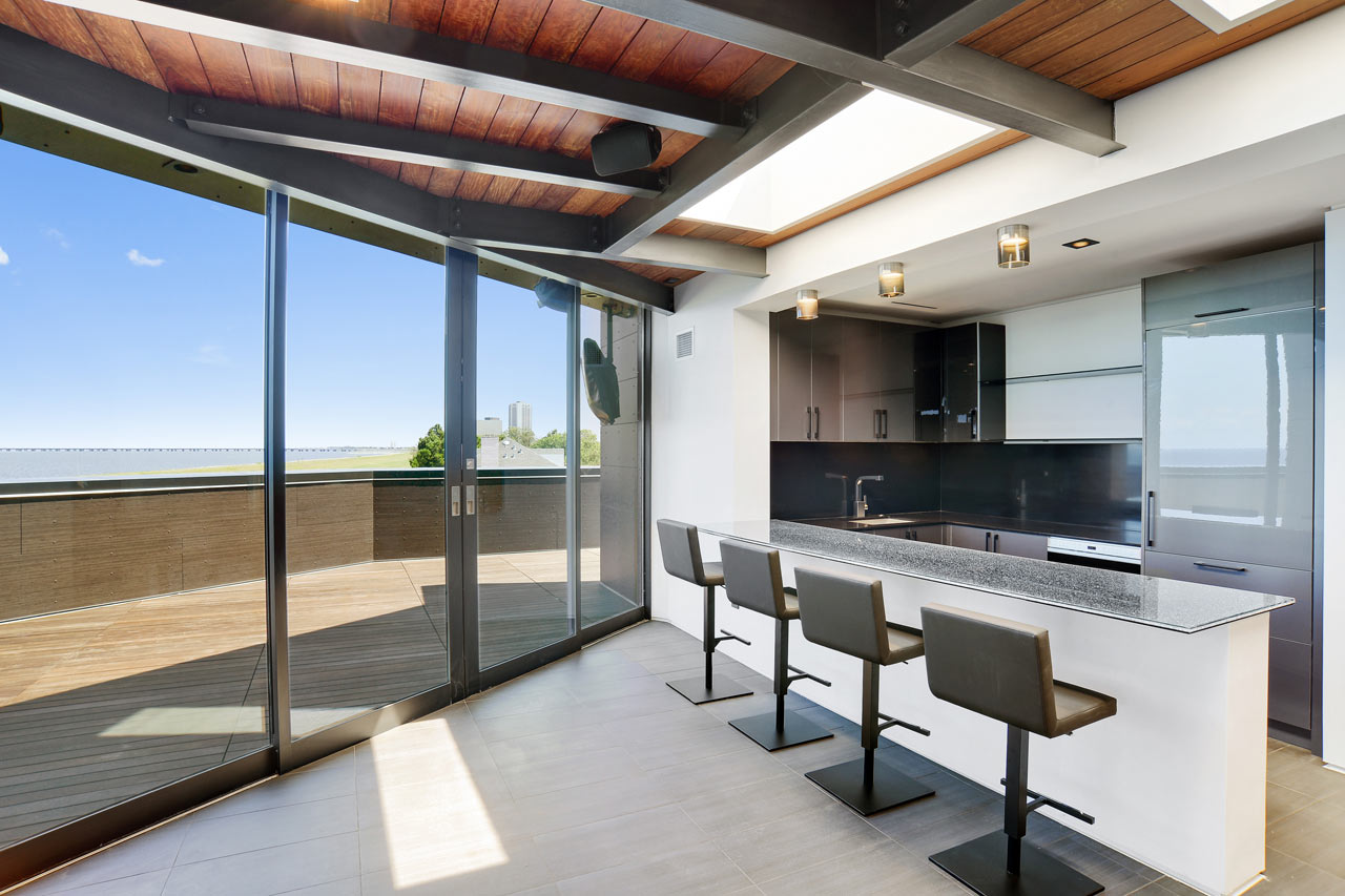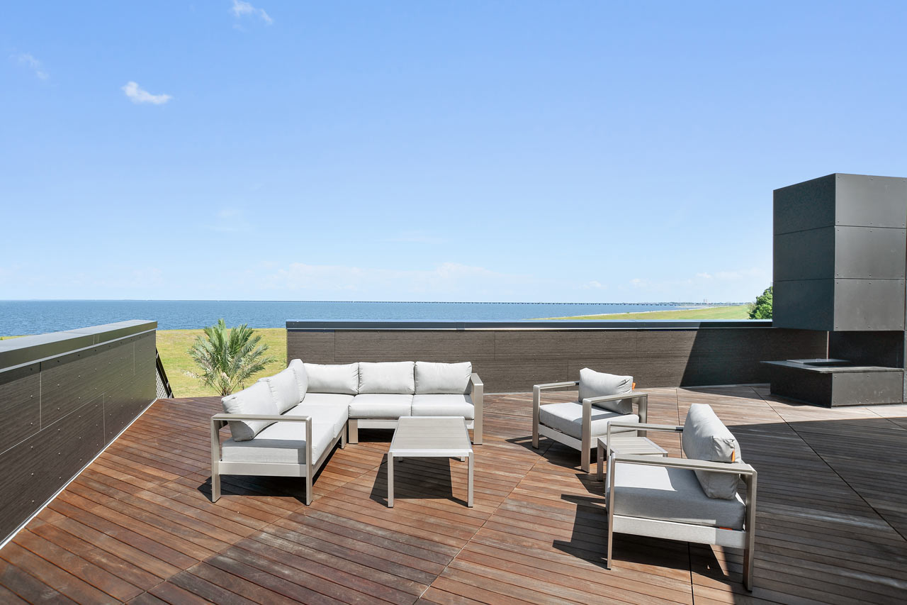 Head to the third floor of the Miller Lane Residence and you’ll be treated to spectacular views of Lake Pontchartrain and a great living space to relax and unwind away from it all. This stunning home is geared towards laid back living for its owners with understated design elements but has also been cleverly designed to make sure that it is well protected from the storm surges that typically follow hurricane activity in the area.