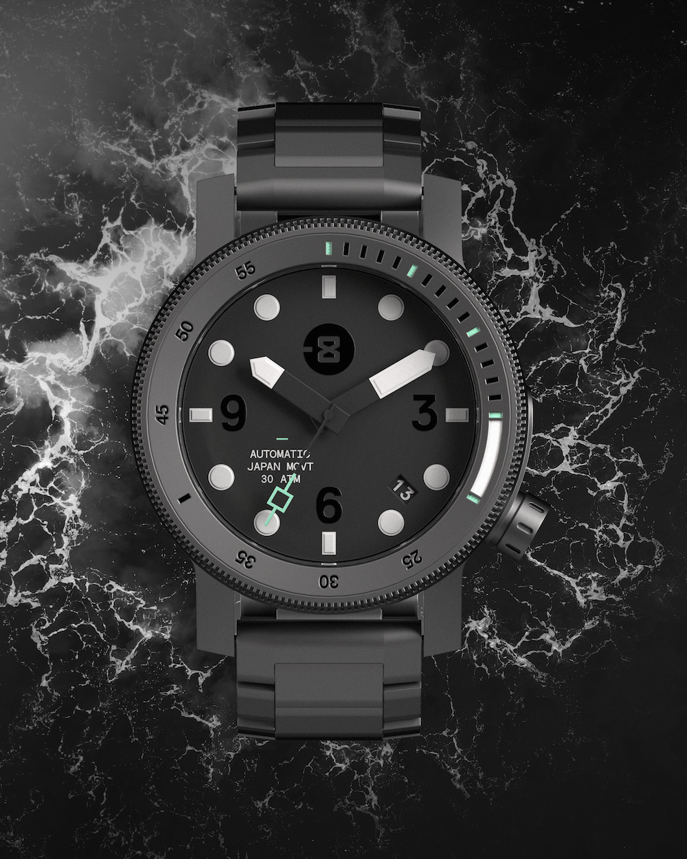 MINUS-8’s dive watch is made from crystal clear sapphire glass and Super-LumiNova hands and markings, to deliver a striking, high-contrast, readable dial. The case and bracelet are crafted from lightweight titanium and strong enough to withstand the toughest environments. They have included key diving features like a rotating dive timer bezel and a helium release valve, to guarantee this watch is ready to tackle any dive. With the screw-down crown now positioned at 4 o’clock and a reliable NH35 Japanese crafted movement, MINUS-8 have created a modern dive watch ready for all life’s adventures.