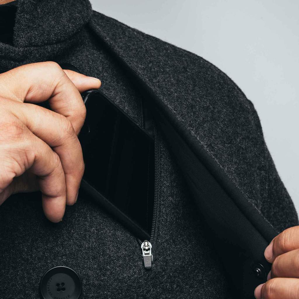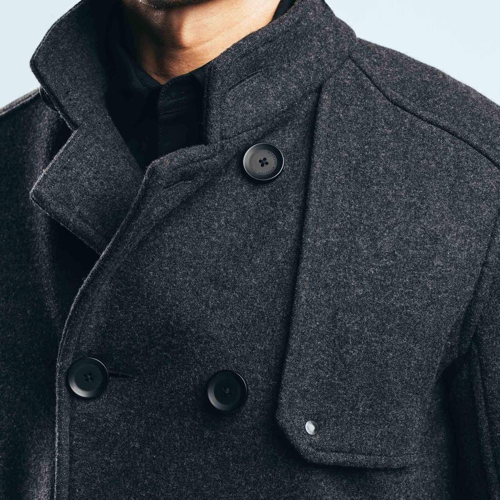 The Mission Workshop Bridgeman Peacoat has an exterior that is crafted from a highly refined wool/nylon stretch-woven textile, whilst on the inside, you’ll find soft and warm high-performance polyester fleece that really ramps up the comfort levels significantly. The 3-layer fabric construction lets this ace piece of apparel to be manufactured without the need for a sewn-in liner so it lessens the bulkiness and makes it perfect for layering.