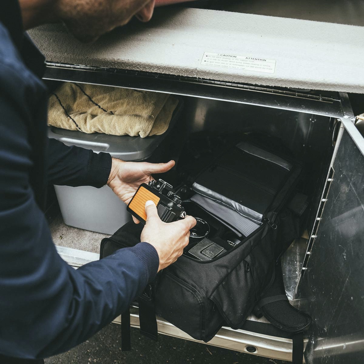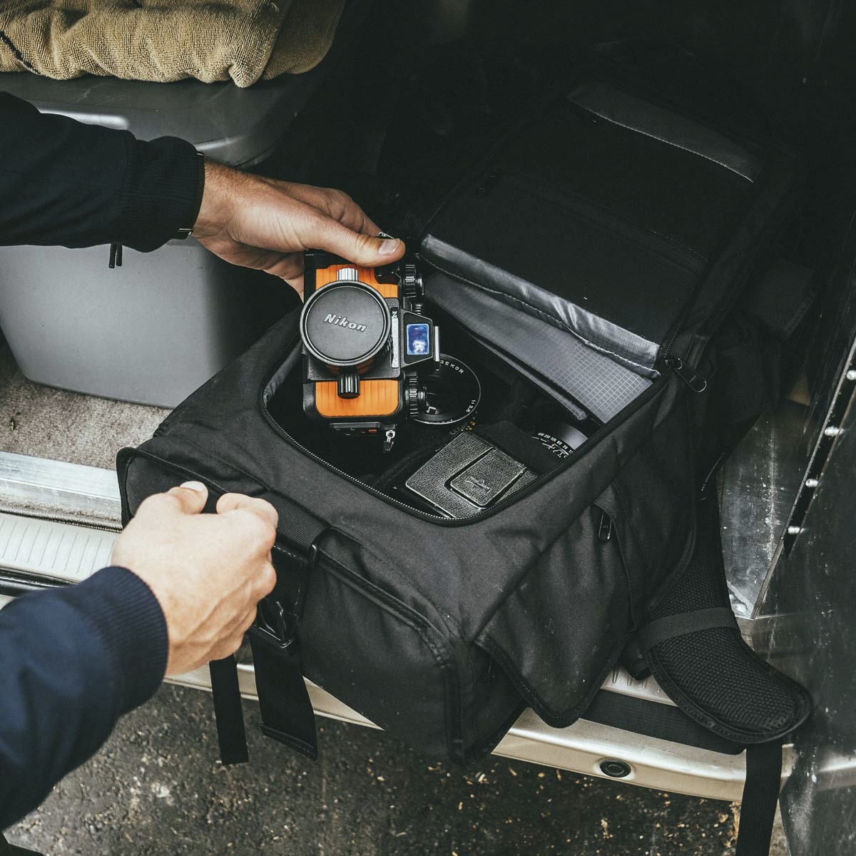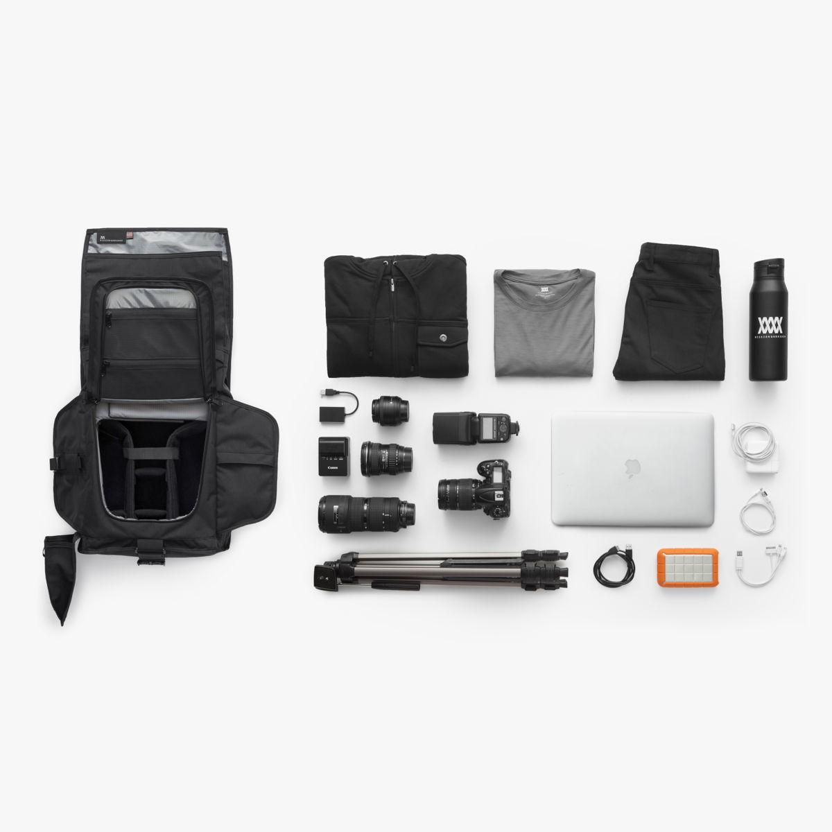 The Mission Workshop Integer Camera Pack offers a mighty cool, stealthy aesthetic and the front and side panels deliver direct access to the padded camera compartment so you can get your camera out quickly if required. This compartment can be customised and configured with movable dividers to act as storage for an array of camera bodies, lenses, lighting equipment, sound gear, or small drones. Additionally, it can also be taken out entirely so as to transform the Integer into a fully-featured standalone laptop and/or travel pack.