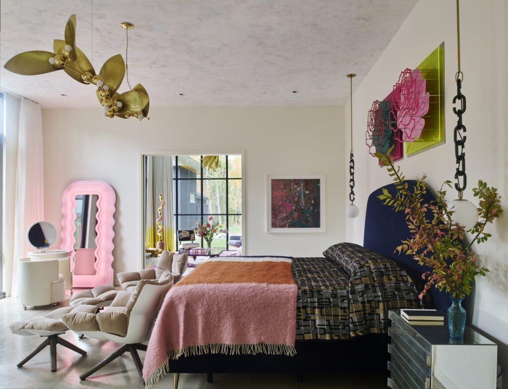 This space opens effortlessly onto a deck and screened porch, blurring the lines between the interior and the lush New York landscape. The layout is thoughtful, placing a large guest suite at the back for privacy, ensuring that when the couple’s children and future grandchildren come to stay, everyone has their own retreat.