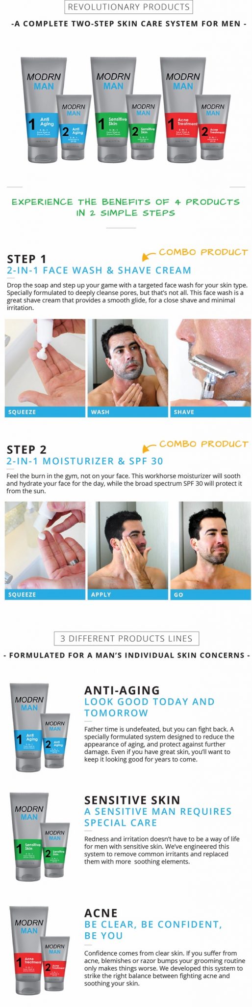 Traditionally men have not have been overly concerned with their skin care endeavors, but more and more are starting to come around to the idea of a daily routine of skin care and finding the right products to coincide with this is a must. MODRN MAN aims to overcome the limited options when it comes to skin care products available to men and deliver them in a no-nonsense way and, all importantly, at an affordable price.