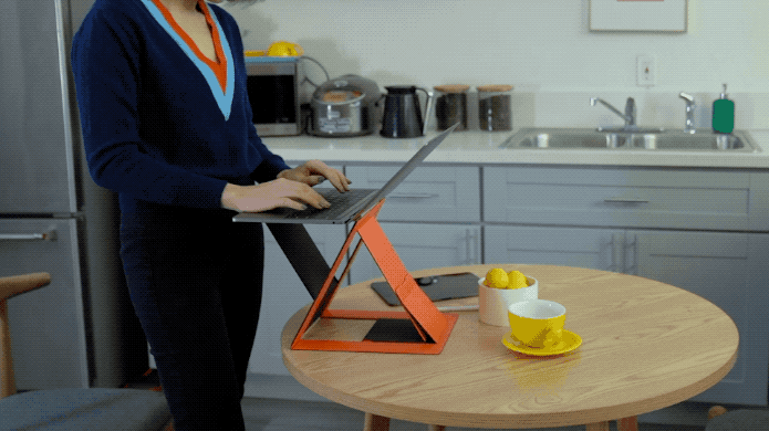 This impressive stand quickly switches your sit and stand posture and takes the stress off your back in a matter of seconds, which lets you get a more comfortable and relaxing posture whilst working on a laptop. When you are standing, the MOFT Z provides a natural height for your palms to rest onto the laptop, and your eyes to look at the screen with no strain or tension. The light-weight body and foldable design makes MOFT Z the only sit-stand desk that you can actually use on your lap.