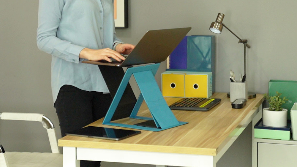 The MOFT Z Invisible Sit-stand Laptop Desk on Kickstarter ($49) is designed with a continuous one-piece structure. There are no tools needed for setup and it will stand up effortlessly when you need it, and unfold back quickly when you ready to make a move. As it’s roughly the same size as a magazine, you can store MOFT Z pretty much anywhere you like, whether that be in your desk drawer or laptop sleeve – so, basically, you won’t notice it when you don’t need it.