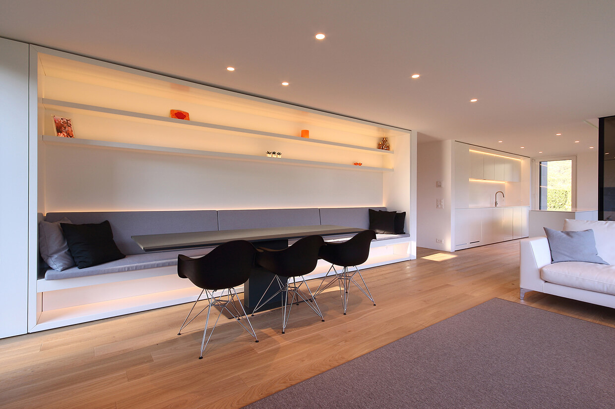 A thermally insulated, prefabricated wooden exterior is ideal for the alpine environment in which the Montebar Villa resides and, perhaps more impressively, the entire structure was erected in just a few days. The final cladding on the exterior of this superb property is porcelain stoneware tiles which deliver the highly engaging aesthetic and energy efficient finish that is important for the architects.