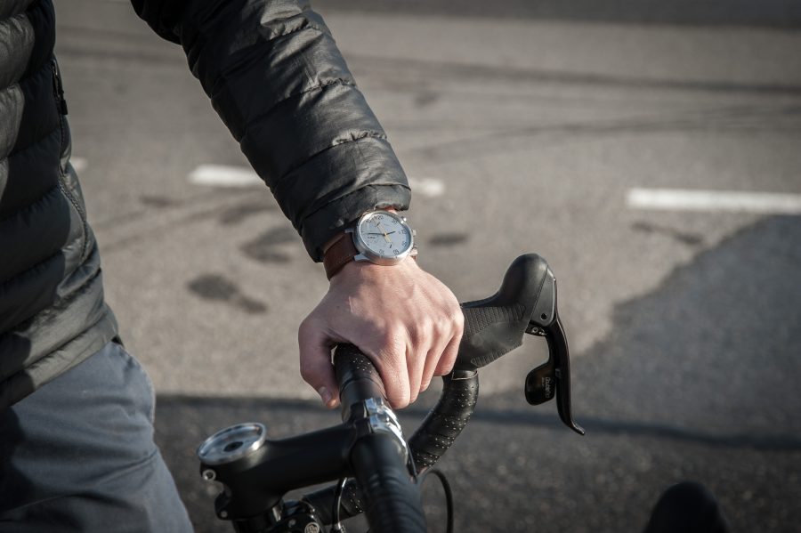 As a smart watch, it keeps you informed of all your notifications from emails to messages and phone calls which show up on the dial immediately. In addition to these first rate smart features, the Moskito is also a chronograph which is an analogue tachometer that provides you with everything you need to know about your cycling adventure: namely, your current speed, the distance travelled, and your average speed.