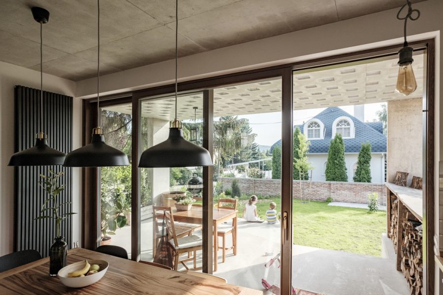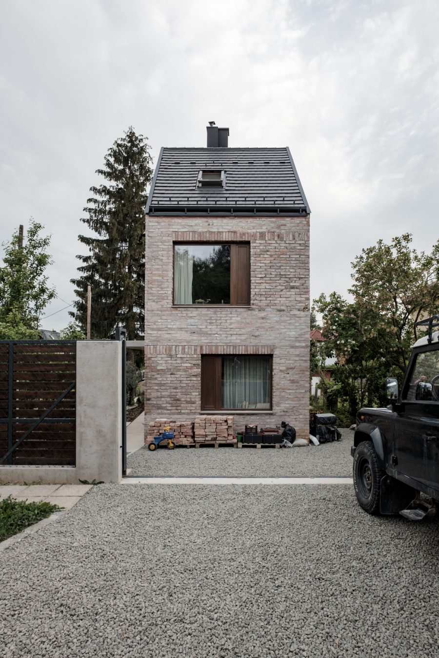 We love house designs that dare to do things differently and this is certainly something which can be applied to the Nedű House from építész stúdió. The property and the surrounding structures are differentiated by the materials used in their construction. The house is clad with recycled, sliced brick, which has taken design inspiration from the demolished building on the site, from which the architects and builders were able to reuse some of the materials, mainly in the form of the pavement and walls of the garden so there is an environmentally friendly edge to this construction.