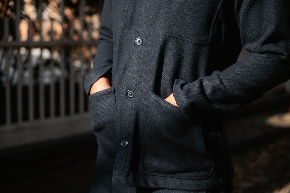 Designed as a barn jacket-inspired shirt coat, the Barnard Shirt / Coat boasts a blend of classic and practical features. It sports a timeless grandad collar, adding a touch of that old-school cool (reportedly inspired by “Grandad” Warren himself). Storage is well considered, with two lower dual-entry pockets – ideal for keeping your hands warm when you awkwardly don’t know what to do with them, and providing secure spots for stashing your everyday carry gizmos. There’s also an outer patch pocket at the left chest and, cleverly, a hidden internal patch pocket on the right side, perfect for keeping your cards (or other secrets) close to your chest.