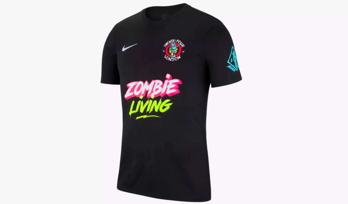 The Nike By 24 London Jersey is one of the first shirts from the Nike By You Collaboration Program and its vibrant aesthetics are definitely to our liking here at Coolector HQ and we’re sure that there will be plenty of streetwear aficionados looking to get their hands on one of these cracking jerseys. This great looking piece boasts a bold zombie theme, which pays tribute to hard work. Zombies never sleep, hustlers never sleep on their dreams and that’s what this collab between Nike and 24 London.