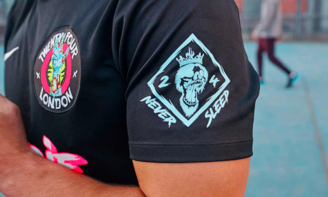 The Nike By 24 London Jersey is expertly complemented by a “Never Sleep” sleeve badge, which delivers as a uncompromising statement of intent to fight against the odds and being responsible for your own wins and successes. There are cool, exposed flesh and bone details which feature on the ribs and the shoulder as another nod to the Zombie Living attitude. Last but not least, the vibrant neo colour scheme which is used throughout the design aims to reflect the unparalleled energy of London at night.