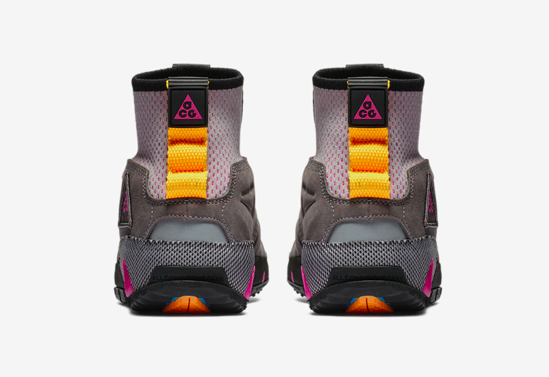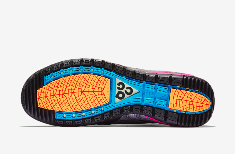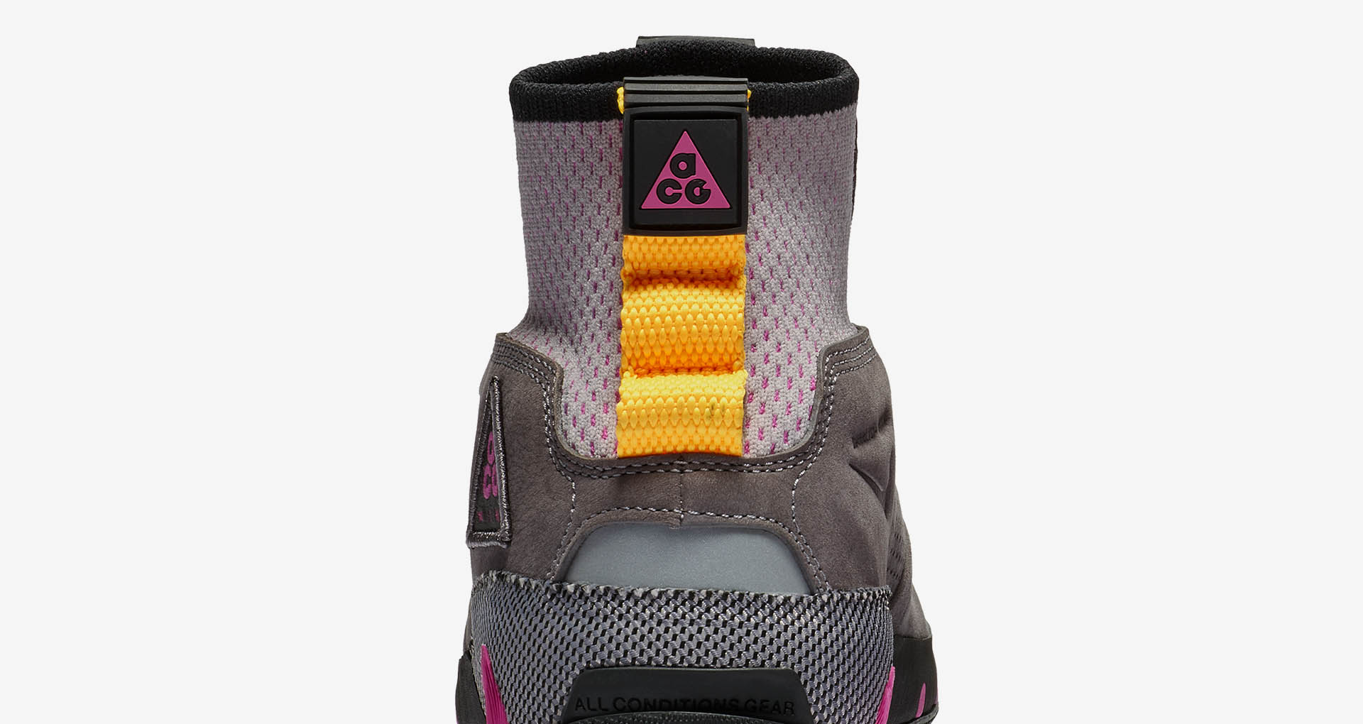 A real attention to detail is apparent throughout the construction of these Nike ACG RUCKEL RIDGE GO OUTSIDE Boots and there are additional materials located between the multi-density outsole and dual-density midsole which act as a “Dynamic Debris Guard”. While the majority of hiking footwear makes use of materials that protect your feet from bruising, and this also creates a barrier that restricts ground sensitivity. Cooper and the team did not want to settle for that, however, and found that the combination of a material originally invented for the Air Foamposite and a rate-sensitive, stretchable, high shock-absorbing foam creates a layer of protection without compromise.
