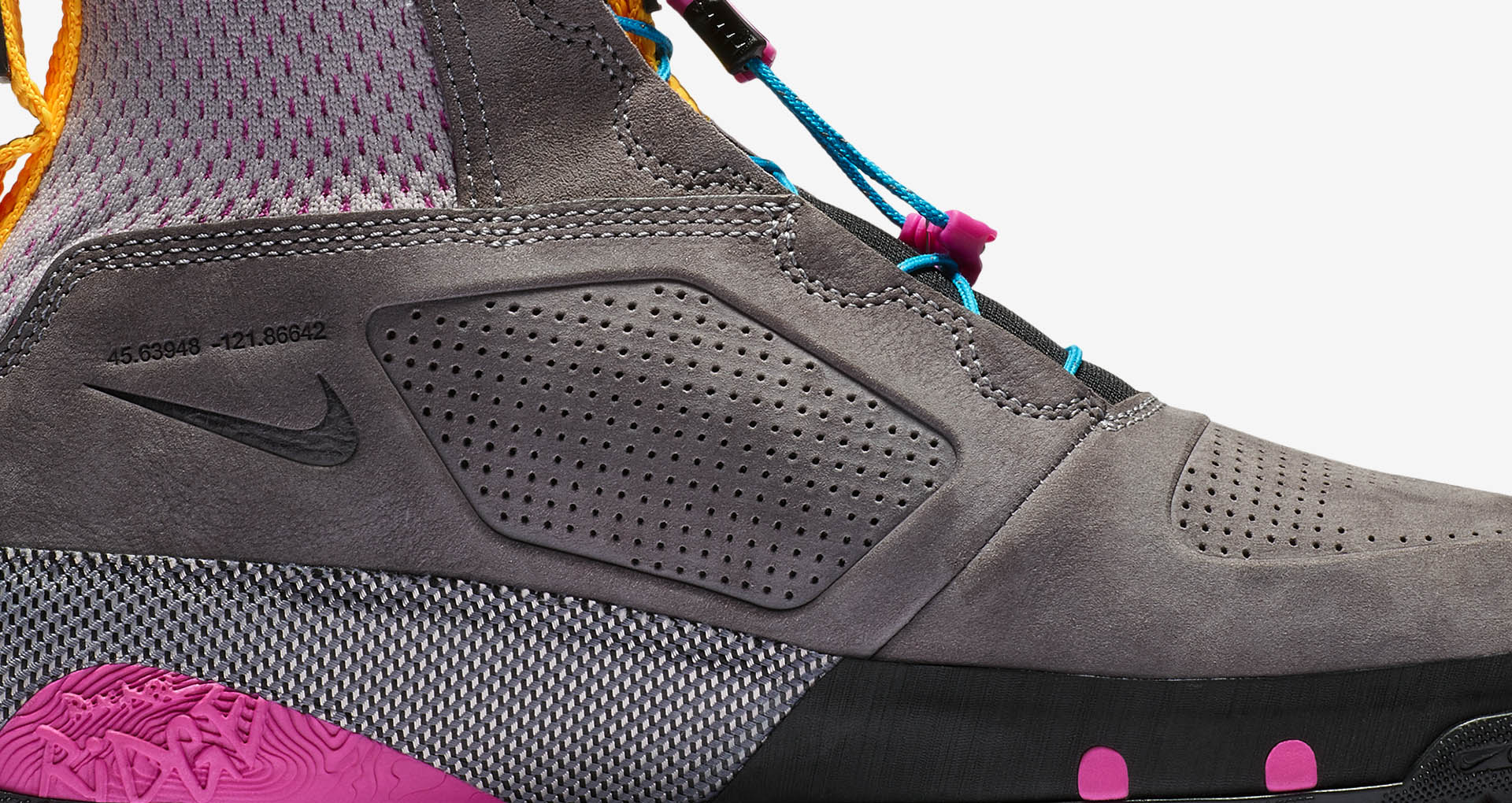 The Nike ACG RUCKEL RIDGE GO OUTSIDE Boots have been designed by long-time Nike Footwear designers, Tinker Hatfield and Aaron Cooper, and the footwear was born from personal insights which were gathered from Cooper’s own excursions out into the wild and it is this sort of first hand experience that gives this Nike footwear an edge over its competition. Cooper explained that he cycled road and trail routes, but always wanted a more hybridised experience. One of the fastest growing trends in cycling is taking an old mountain set-up and turning it into a ‘touring’ bike” so he applied this logic to footwear that can be worn in the city and up a mountain.