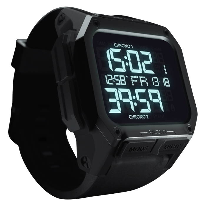 The stealthy styling of The Regulus Watch really does appeal and it has a custom LCD module with 100m water resistance, dual chronographs, oversized LED backlight display, and fiber-reinforced case which has been carefully designed and crafted to be capable of standing up to even the harshest of environmental conditions.