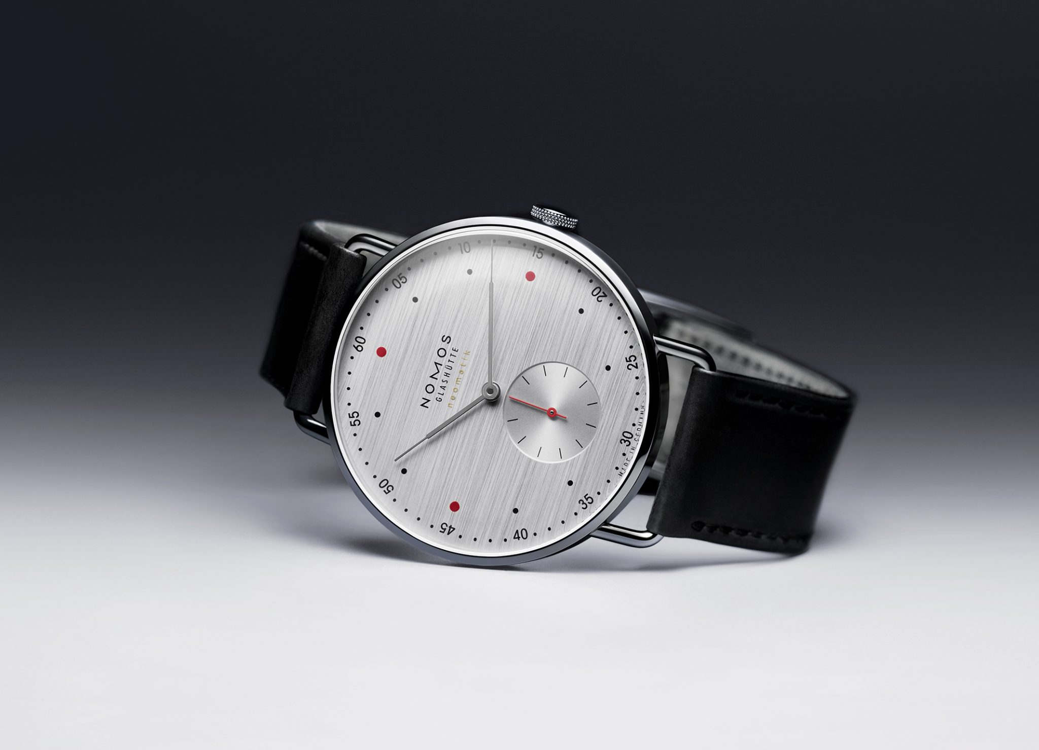 Ideally proportioned, the four different watches in this At Work Collection from Nomos Glashütte – namely, Tangente, Metro, Orion, and Tetra – are masculinely styled and a the slender cases effortlessly fit under a shirt cuff not to mention looking great in an office with a more casual dress code as well. The standout feature of this new collection is the ‘silvercut’ dial which is the result of a highly detailed nine-step process. The gold and rhodium-plated dial is lacquered and wet-blasted a number of times, before the thousandth of a millimeter is removed again and the dial is trimmed flat. To make it really pop, the watch face features splashes of colour in the shape of red dots for hour markers.
