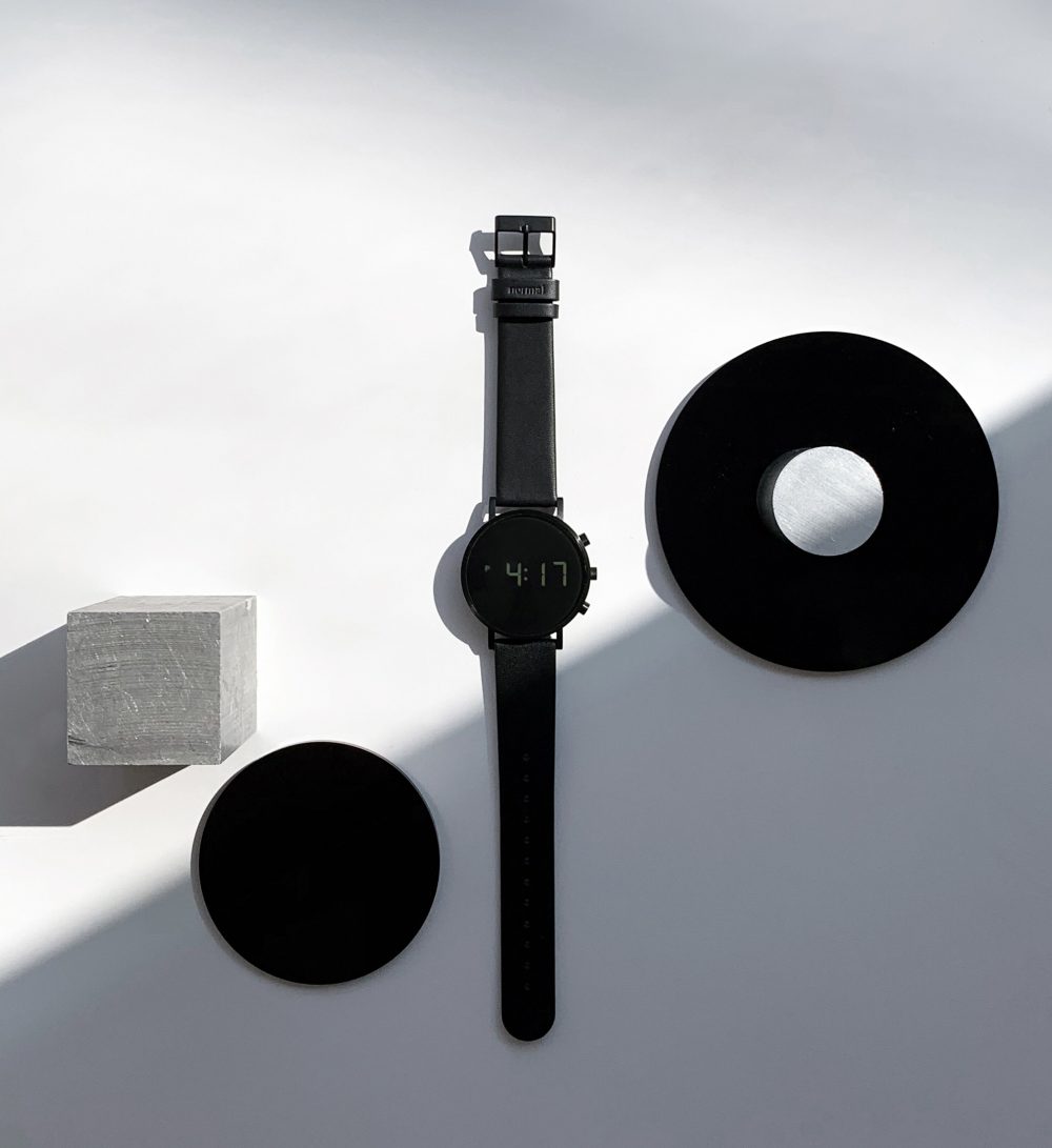 The Tokiji Watch from Normal Timepieces on Kickstarter ($162) removes all of the air, and space from between the lens, and the LCD display to allow the light to pass straight through. Due to the light now being uninhibited, both of these blacks line up perfectly and lets Normal do away with the window altogether and make their mask the shape of the actual display graphics. The end result of this is a very deep, and consistent black across the whole watch face to accentuate its bold, striking digital display.