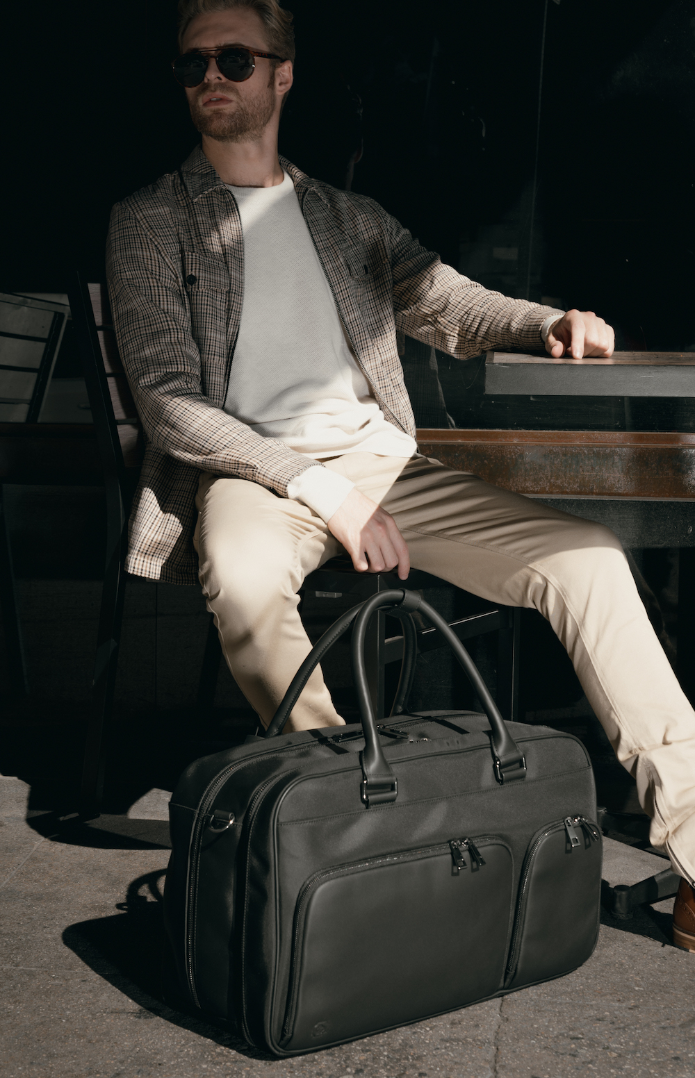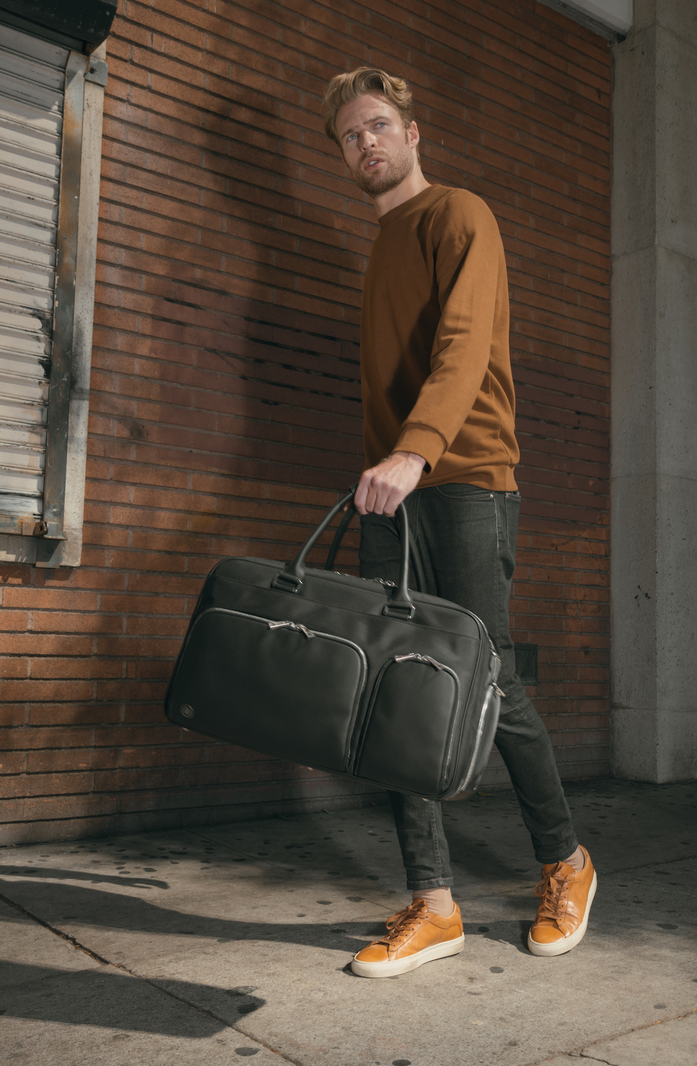 One of the first things which will catch your eye with the Kennedy Weekender is the high quality leather grain accents, premium hardware, and twill exterior. With unparalleled craftsmanship and a keen attention to detail, this minimalistic weekender really is in a class of its own. Storage won’t be an issue due to the three built-in compartments with specific pockets made from a durable water resistant nylon.