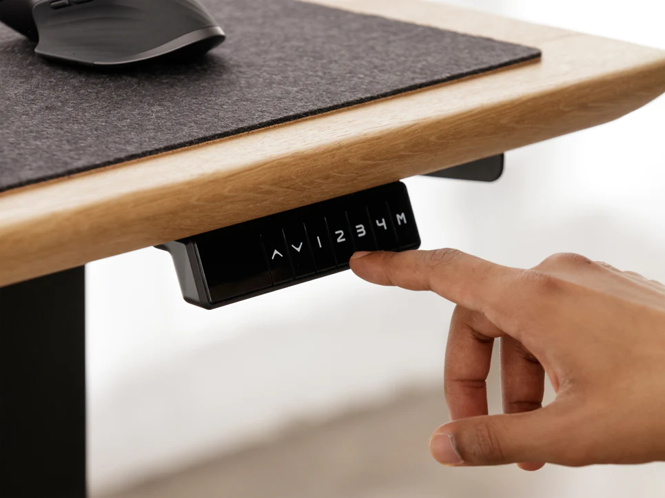 The smart height adjustment system of the OakyWood Standing Desk allows you to save up to four presets and automatically change your position at the touch of a button so, whenever you feel like switching things up during your working day, it couldn’t be more straightforward. The twin-engine drive makes the motion of raising and lowering the tabletop both rapid and pleasingly quiet and the maximum noise level is 45 dB. Effortlessly combining nature and contemporary technology, the OakyWood Standing Desk gives you maximum functionality and comfort.