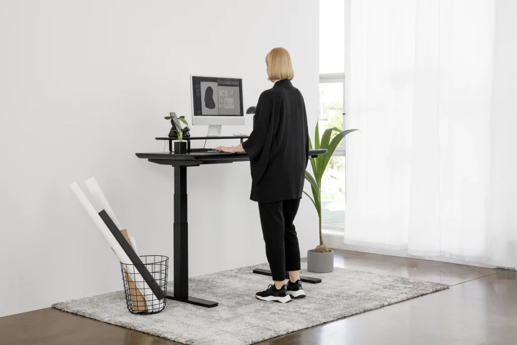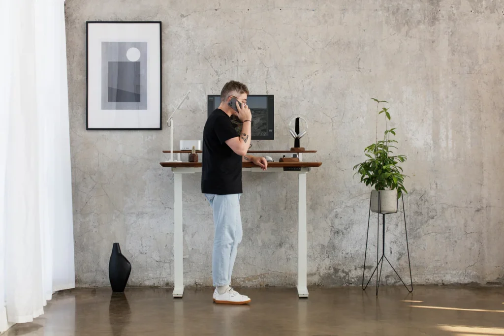 The OakyWood Standing Desk is both stylish and functional and it boasts a sturdy construction, in conjunction with the smart height adjustment system that allows you to precisely regulate your desk and smoothly change your position from sitting to standing throughout your working – which enhances your workspace comfort and performance. The bevelled, rounded worktop is coated with natural oil wax that masterfully balances utility with natural design and ensures it adds a touch of sophistication to any home office or workspace.