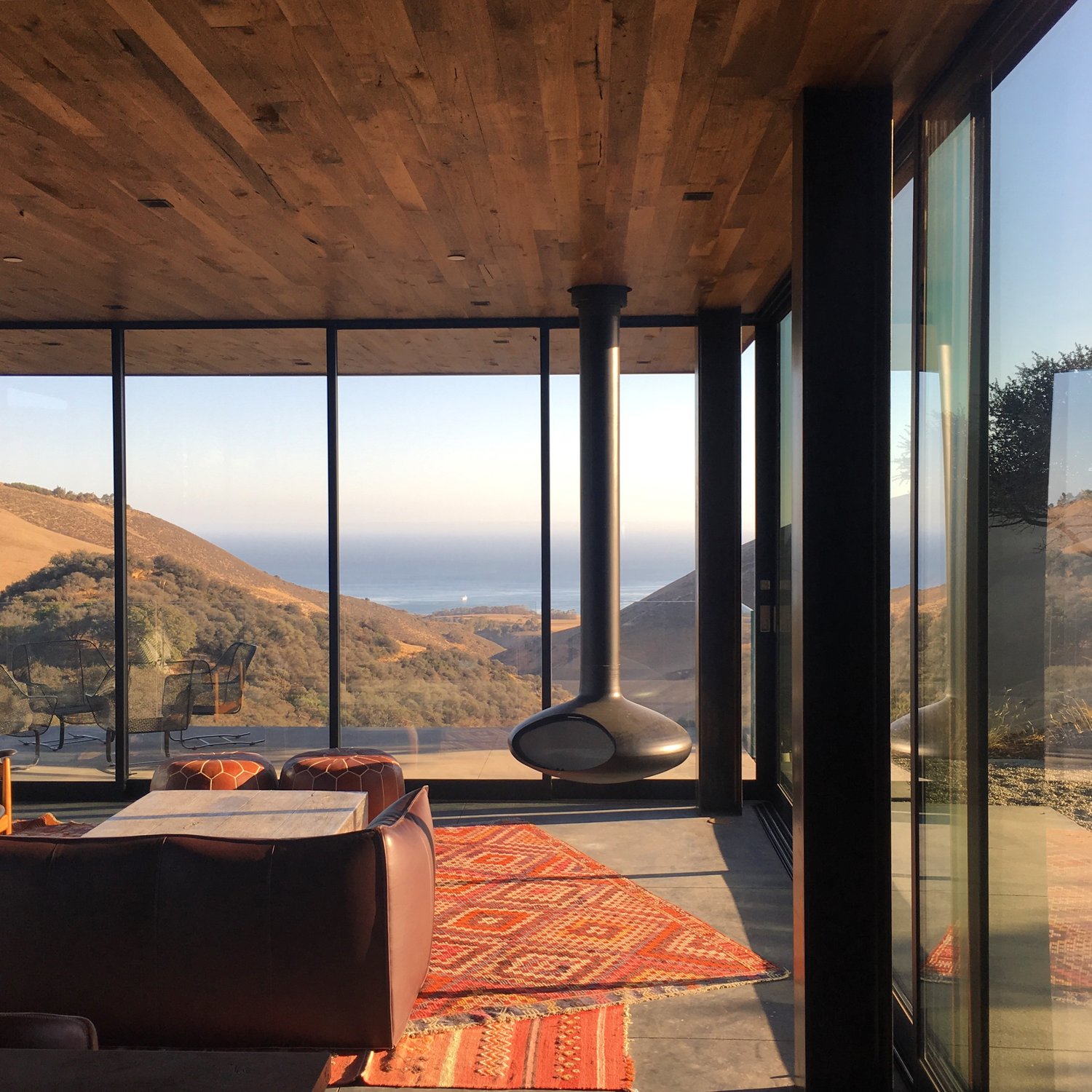 This majestic structure sits about 300 yards away from the owner’s actual home and whilst the building was there when they arrived in 2009, they have completely rejuvenated it courtesy of some imaginative and compelling design work from Anacapa Architects in Santa Barbara. It boasts a long  and narrow footprint which keeps to the natural contours of the sheltering ridge that runs perpendicular to the coastline. With around 800 square feet of floor space, the Off-Grid Guesthouse cantilevers over a steep rock face, and the living spaces open out onto a stunning, L-shaped desk where you can really drink in those Californian coastline views.