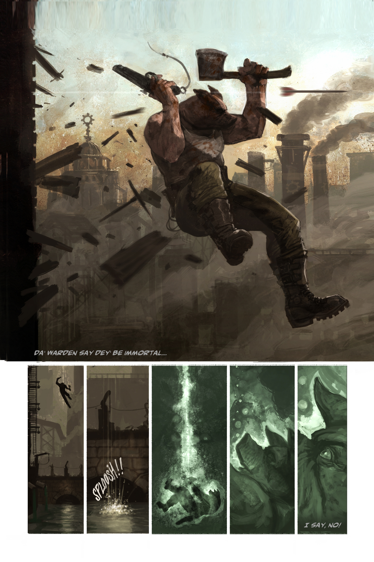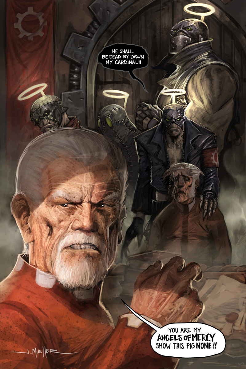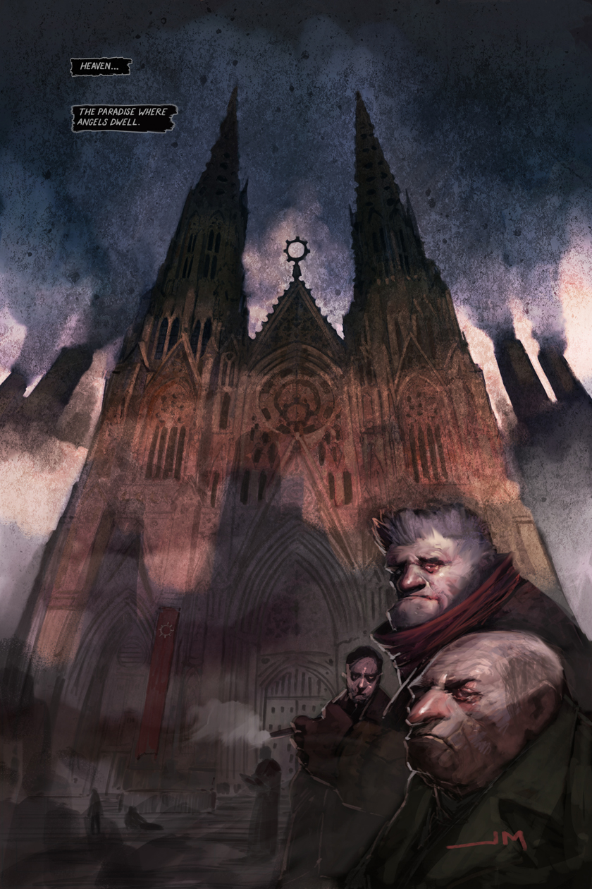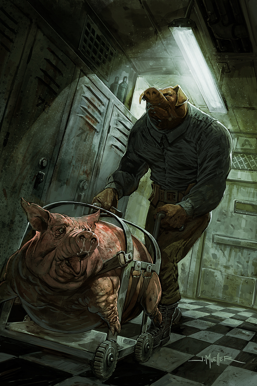 When the artwork is as jaw-droppingly brilliant as this by John Mueller, I was sold as soon as I laid eyes upon it and didn’t need any backstory to convince me. This digitally remastered version of his classic piece of graphic novel boasts 96 pages of swine awesomeness and you can check out below just why this graphic novel blew me away: