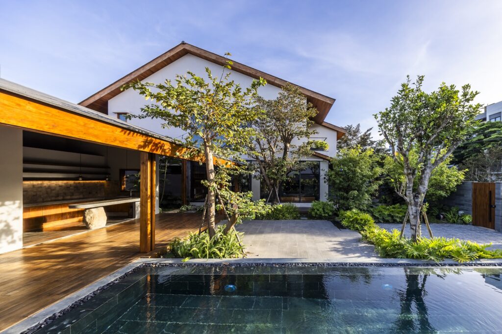 The genius of OM House lies in its incredible spatial efficiency and flow. With a modest building ratio of just 47%, the majority of the property is dedicated to glorious outdoor living. We’re talking about more than just a patch of grass here; this villa is enveloped by a cornucopia of curated green spaces designed for a multitude of outdoor pursuits.