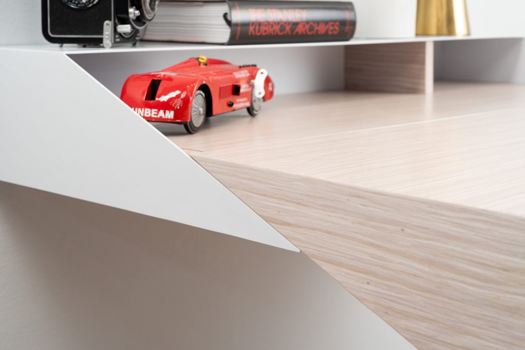 Part of Orange 22 Modern’s Minimal Collection, which is a Charles and Ray Eames inspired range of iconic bent wood furniture, is crafted from sustainably sourced materials. The design philosophy is that of ultimate reduction which results in understated, beautiful forms that accentuate their warm and function – something which certainly shines through with the Hideaway Wall Shelf & Desk.