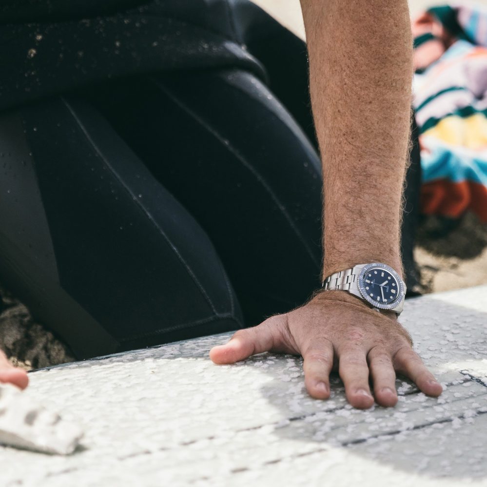 With the Divers Sixty-Five Limited Edition for Hodinkee, they pared down the design to create the ideal balance of go-anywhere ability and always-on-your-wrist versatility. The soft black dial is brought to life by printed markers, a simple hand design, and plenty of lume for maximum legibility through the bubble-domed, anti-reflective sapphire crystal. The faded grey bezel rounds it all out with a lovely tone-on-tone contrast with the dial.