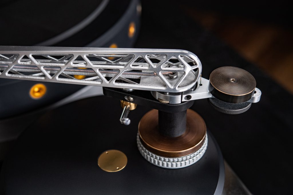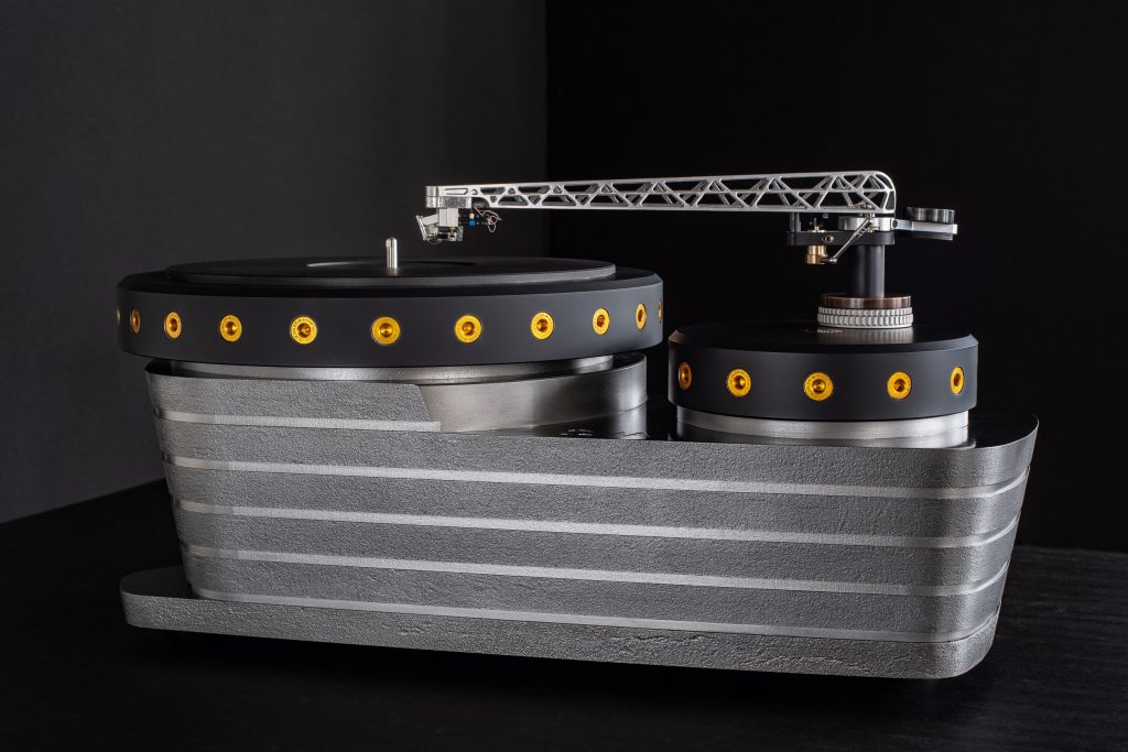 The K3 Turntable has no extraneous elements, and boasts a cast iron chassis that has a minimum number of parts, composed of hypo eutectic or grey iron with high graphite content, itself internally moulded with hollow chambers filled with a special liquid and particulate matter which has been chosen to dampen and absorb vibrations. The innovative external appearance of the chassis, which showcases the casting process, is in contrast to all other turntables on the market which are merely machined out of a solid block of material.