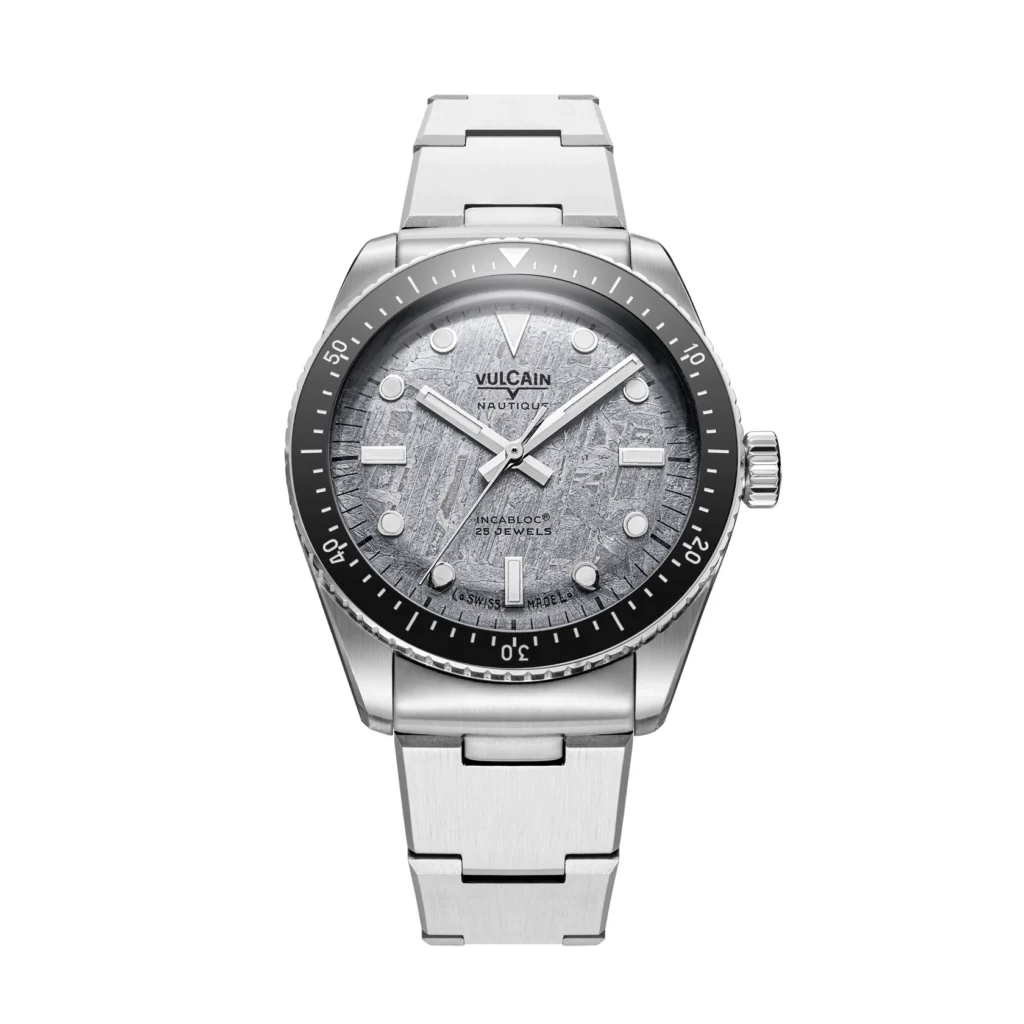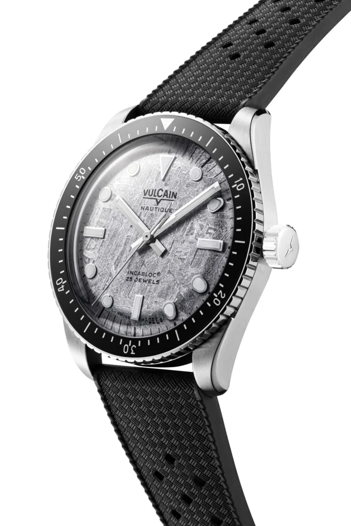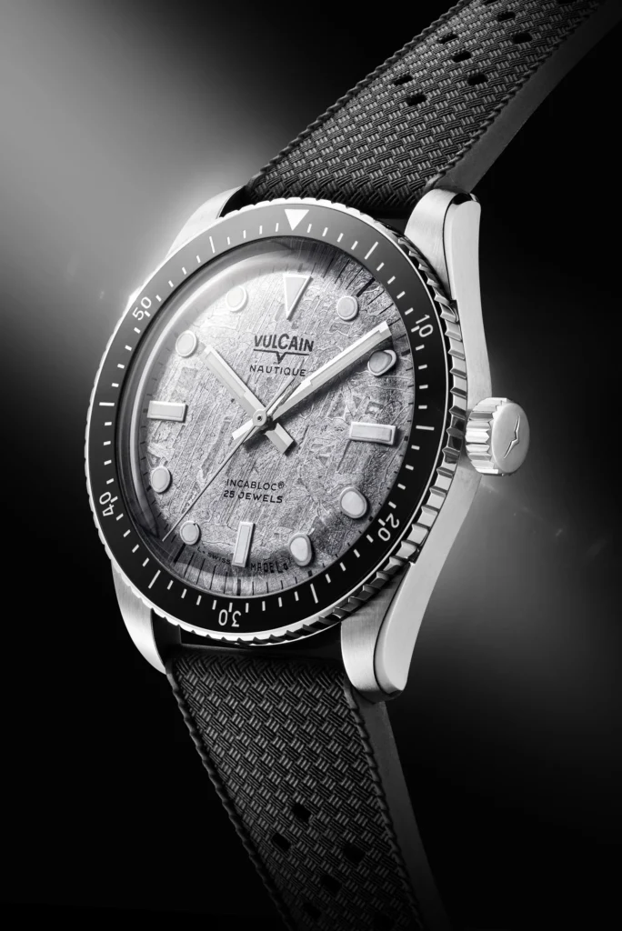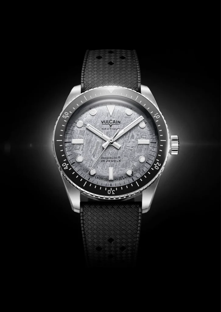 Now, they have elevated that classic silhouette with an undeniably extraterrestrial twist. The Vulcain Skindiver Nautique Meteorite is a breathtaking release that successfully marries serious underwater capability with a dial forged in the vacuum of space.