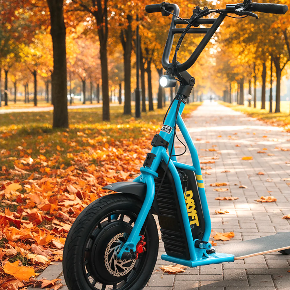 This dichotomy is powered by a high-torque, 500-watt brushless gearless hub motor. Unlike the top-speed focus of competitors, the Dryft motor is uniquely tuned for acceleration and torque, delivering an intoxicating, responsive pull that is simply not possible on less stable, narrow-deck scooters and, crucially, this ensures that it is street legal in all 50 States without registration.