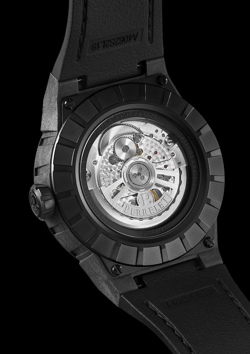 The powerful movement on this watch is backed by COSC and Chronofiable certifications, obtained after undergoing a series of comprehensive tests carried out at the independent laboratories of the Official Swiss Chronometer Testing Institute so you know it will provide a performance beyond compare on your wrist. The Perrelet Turbine Carbon Forest Green comes with an alligator-pattern calf leather strap with rubber lining, in forest green, with black stitching and a customised folding clasp. Last but not least, it comes delivered in a special ‘Tactical Box’ that also includes an additional black rubber strap and a fastening tool for changing up the watch’s look when you feel like it.