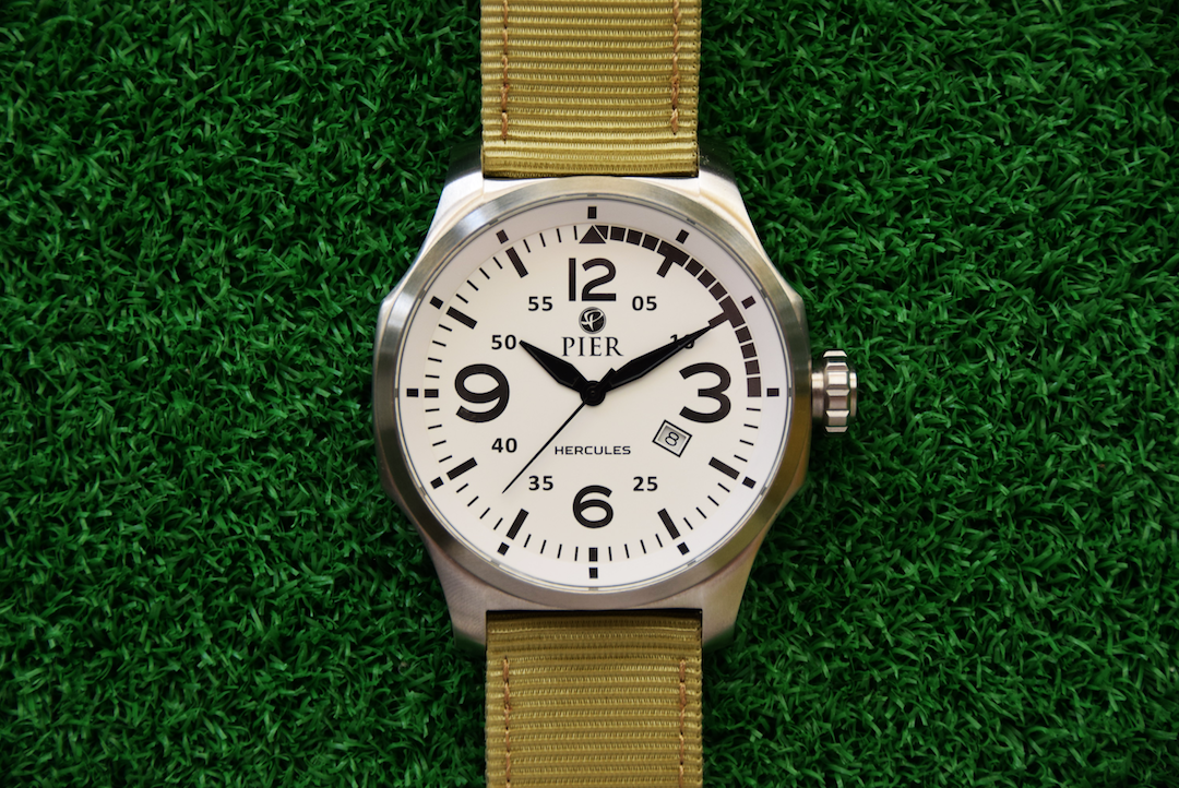 It takes a colossal watch to dare take on the moniker of Hercules but once you lay your eyes on this robust, uncompromising offering from Pier Watches, you’ll know that it is a most appropriate name indeed. The glorious looking Pier Hercules Watch is certainly no shrinking violet (it measures 50mm across the face) so you’ll be turning heads of aplenty if you’ve got one of these watches, which are funding over on Kickstarter now, adorning your wrist.